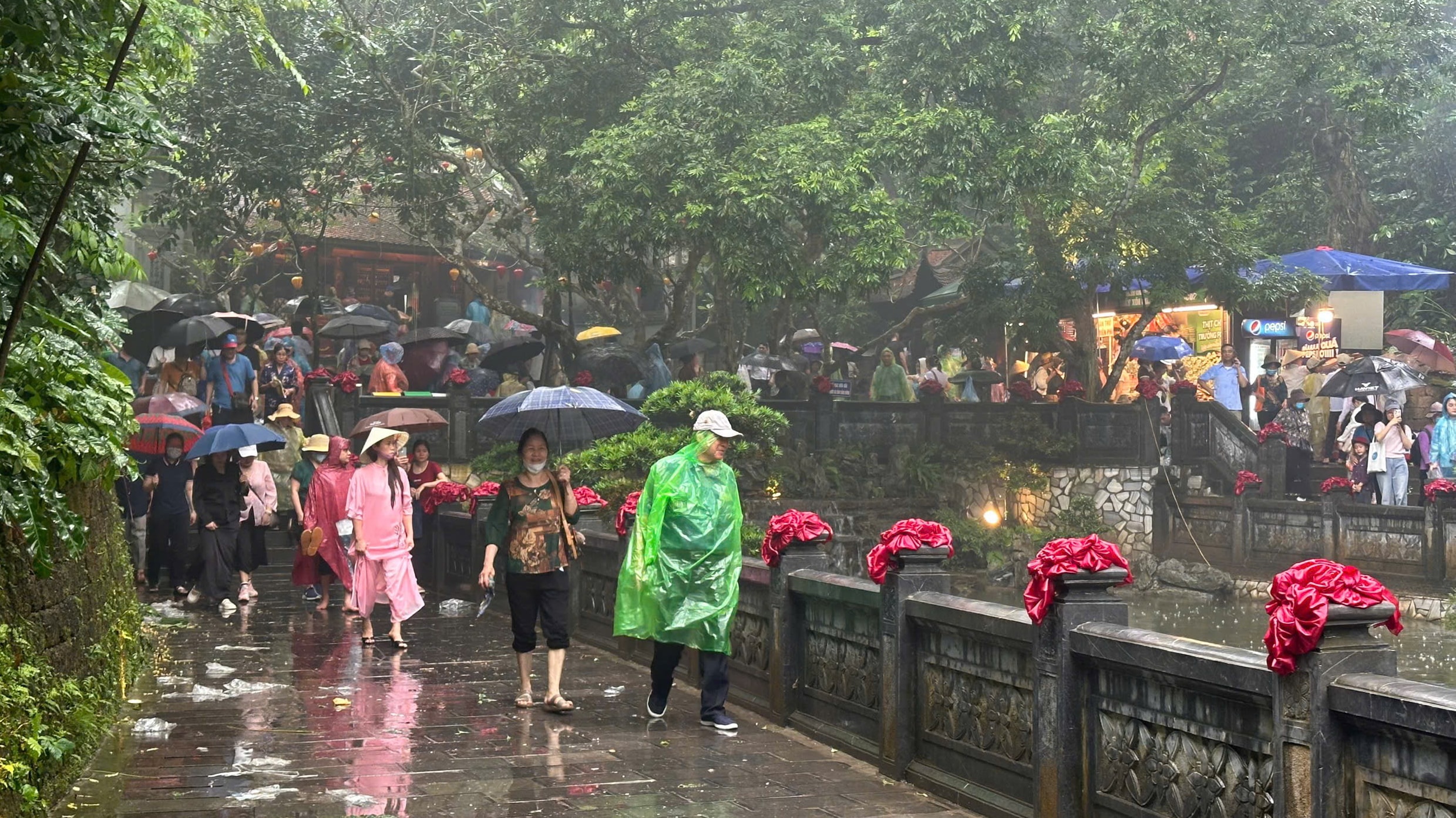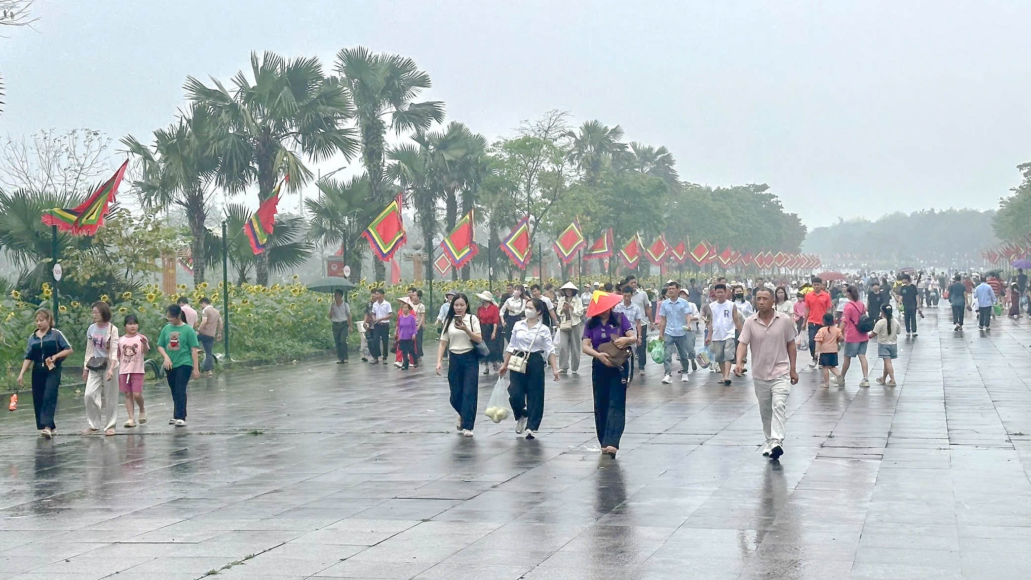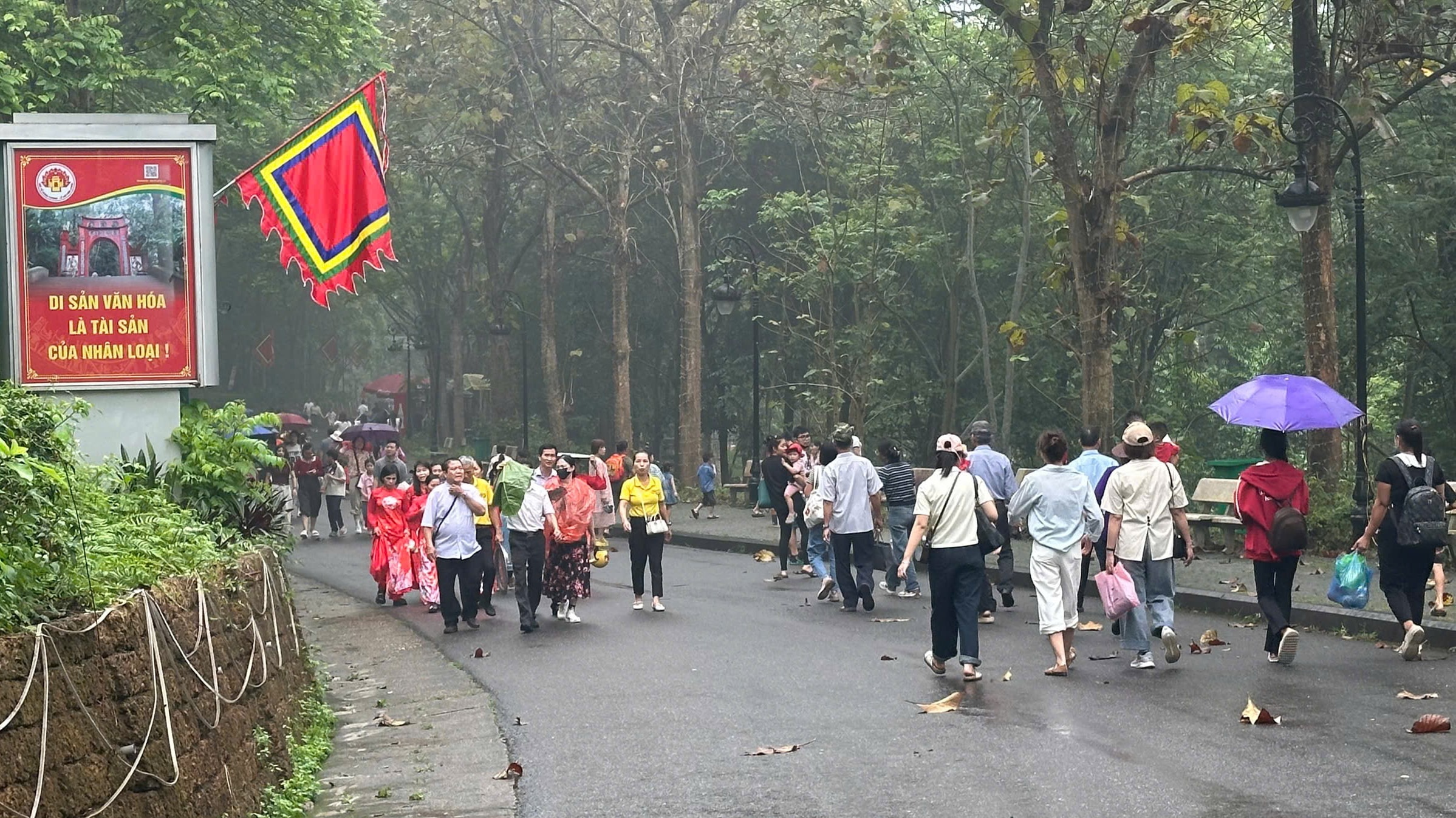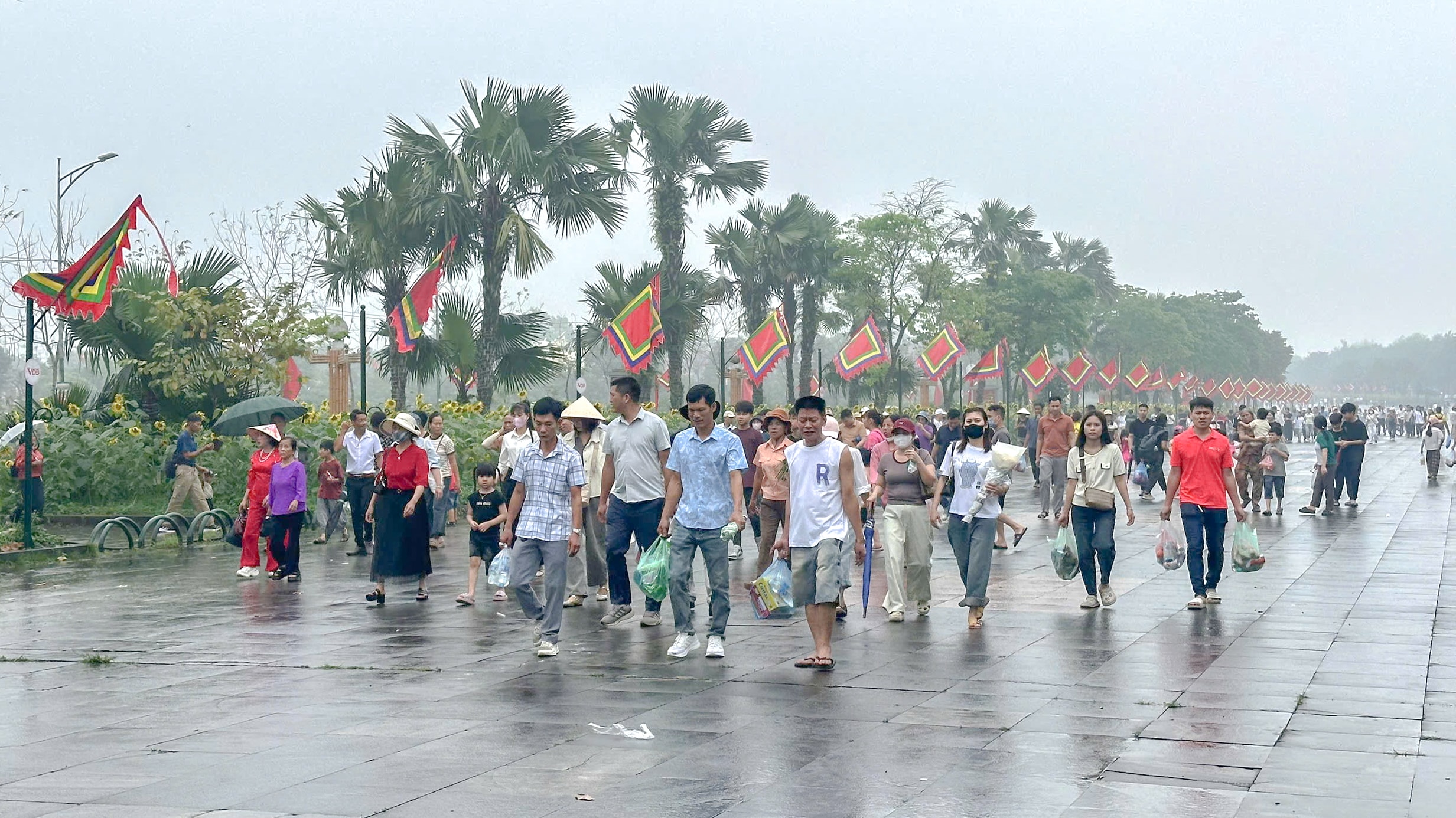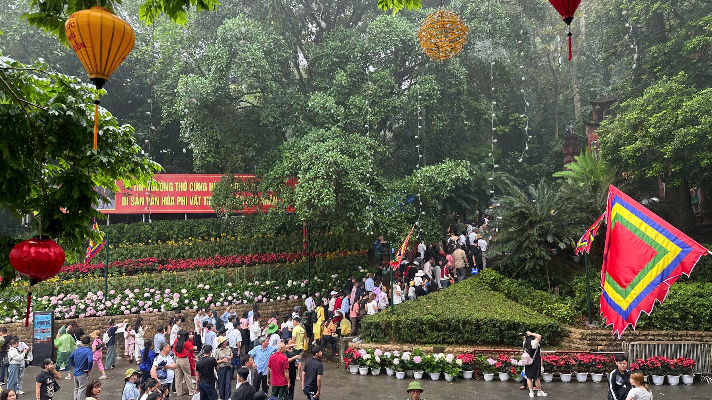 Dù thời tiết mưa, không thuận lợi nhưng dòng người vẫn đổ về để lên núi Nghĩa Lĩnh dâng hương tưởng nhớ các Vua Hùng. Ảnh: Trường Quân