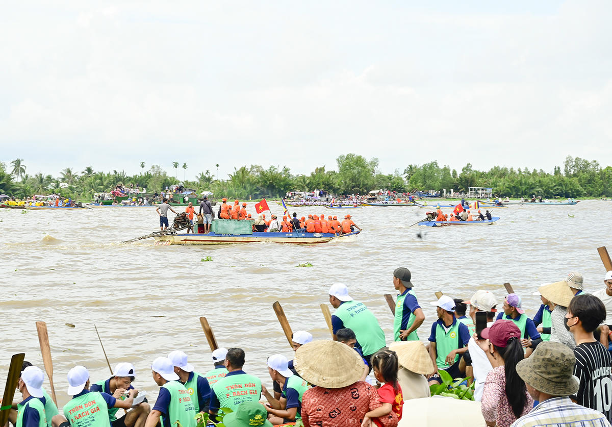Không khí náo nhiệt trên dòng Cái Lớn. Ảnh Nguyễn Minh.