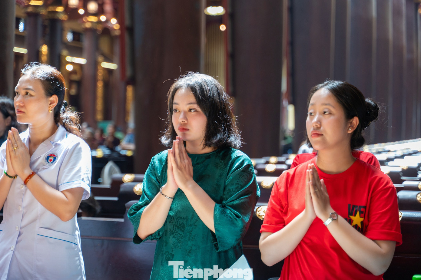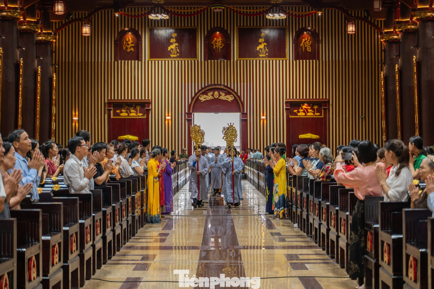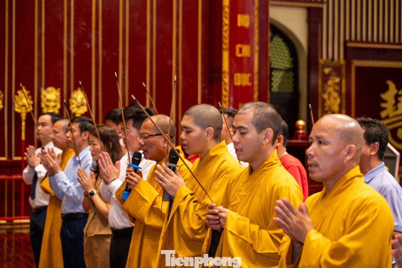 Cùng với đó, người dân và du khách cùng tăng ni, phật tử và nhân dân thực hiện nghi lễ cầu Quốc thái dân an.