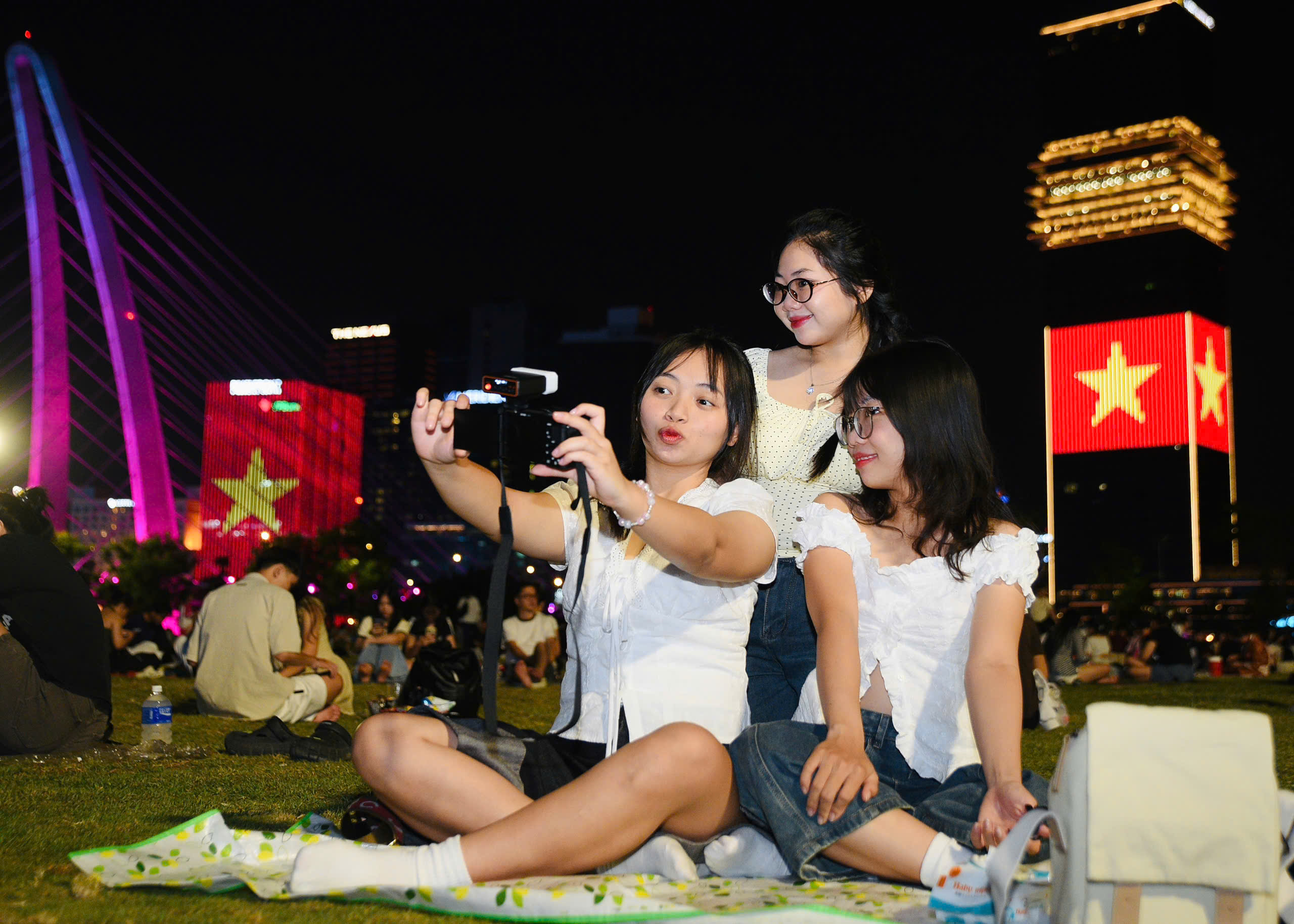 Các bạn trẻ cũng tranh thủ chụp lại những khoảnh khắc cùng bạn bè trước giờ pháo hoa.