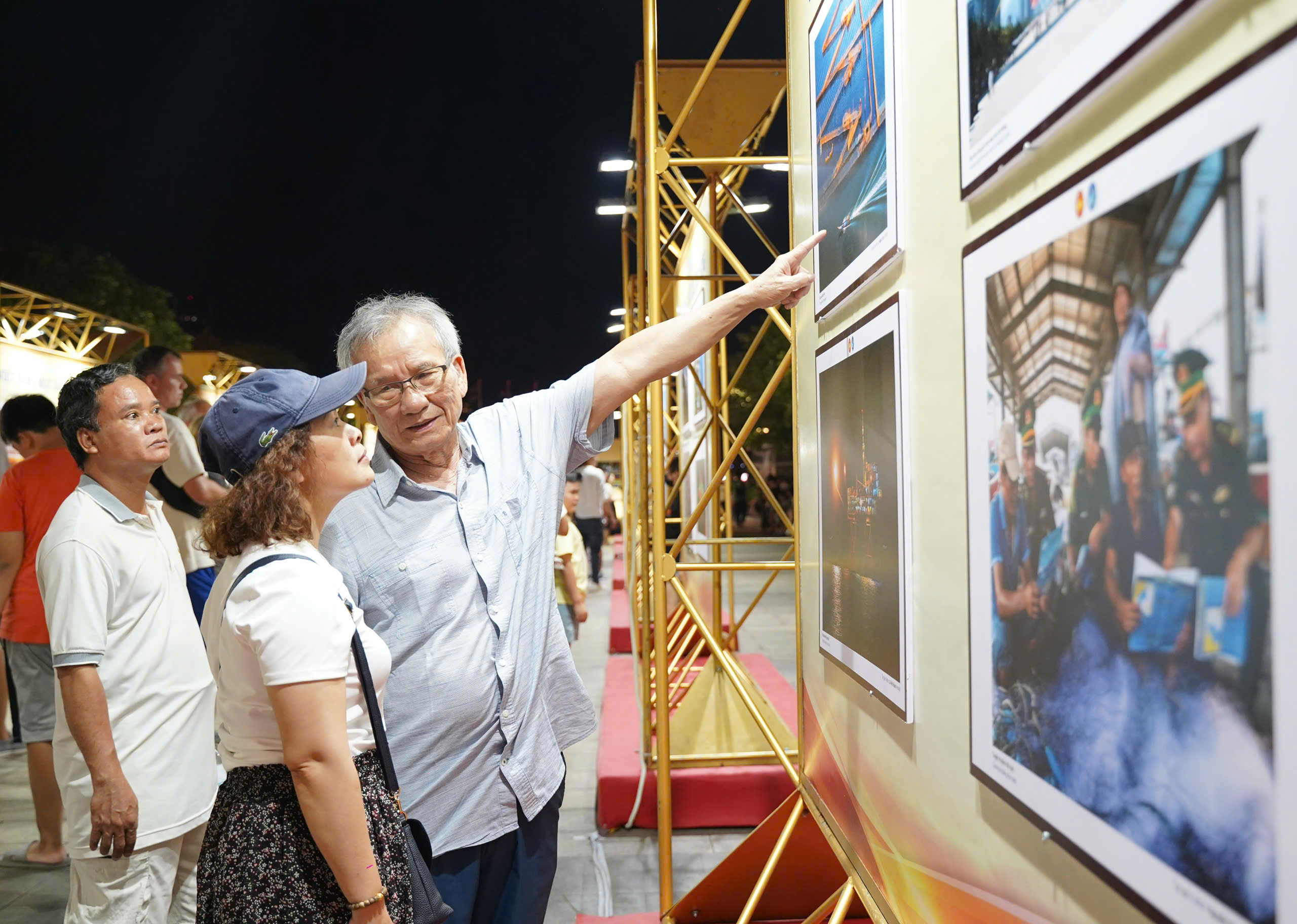 Người dân và du khách tham quan triển lãm ảnh "TP.HCM vang mãi khúc khải hoàn" tại phố đi bộ Nguyễn Huệ.