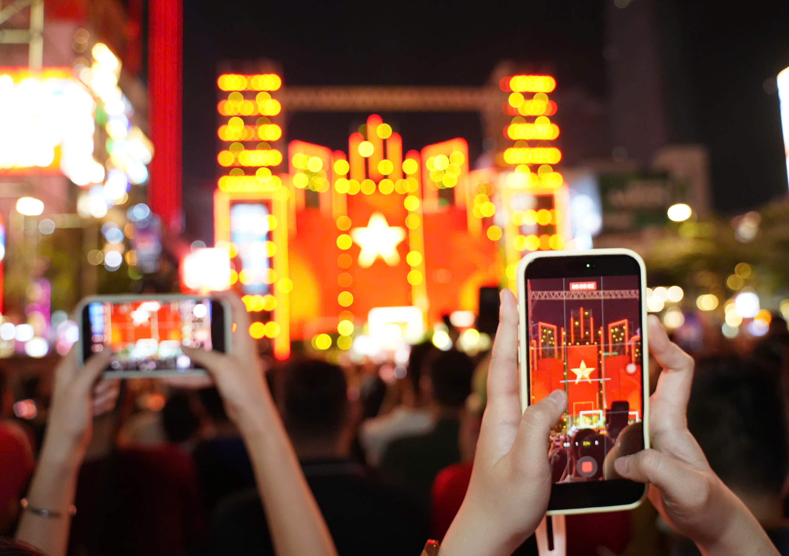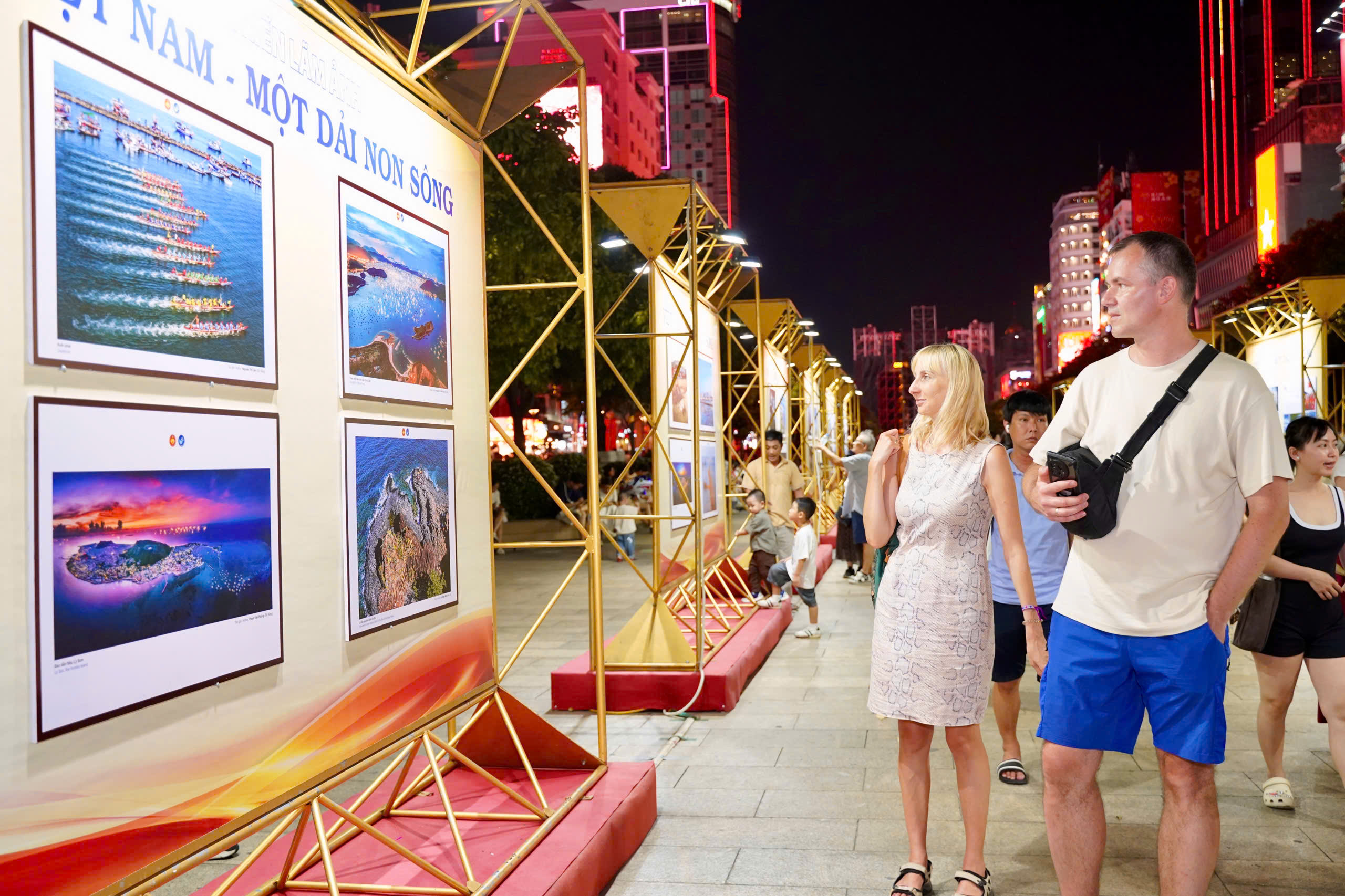 Khoảng 19 giờ 30 phút, không khí tại phố đi bộ Nguyễn Huệ (phường Sài Gòn) trở nên sôi động, nơi diễn ra chương trình nghệ thuật kỷ niệm 51 năm ngày Giải phóng miền Nam, thống nhất đất nước (30-4-1975 - 30-4-2026) và 140 năm Ngày Quốc tế Lao động (1-5-1886 - 1-5-2026).