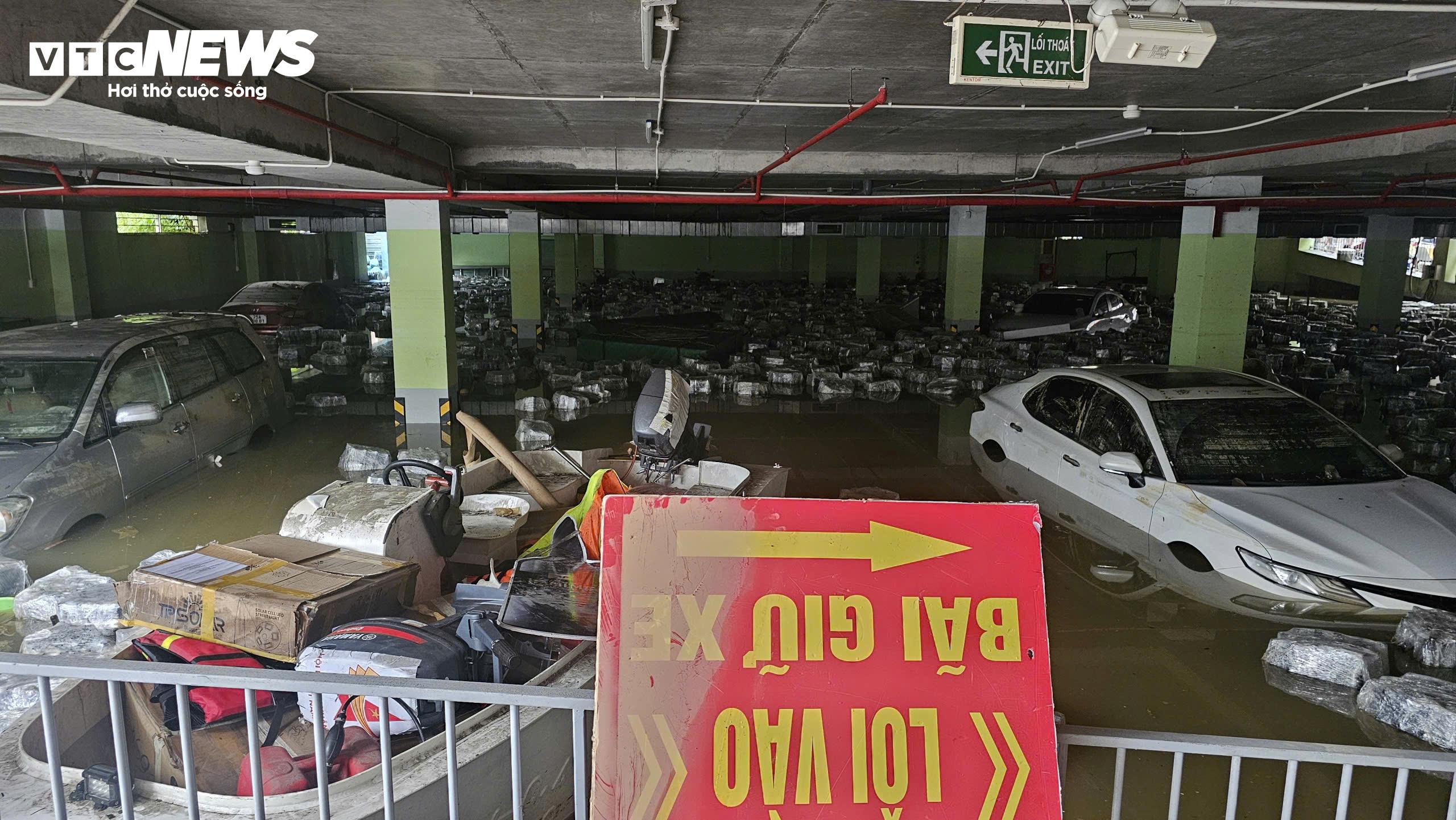 Các đơn vị quản lý hầm gửi xe tại chung cư, trung tâm thương mại phải huy động máy bơm để hút nước ra ngoài, tuy nhiên lượng nước còn lại rất lớn.