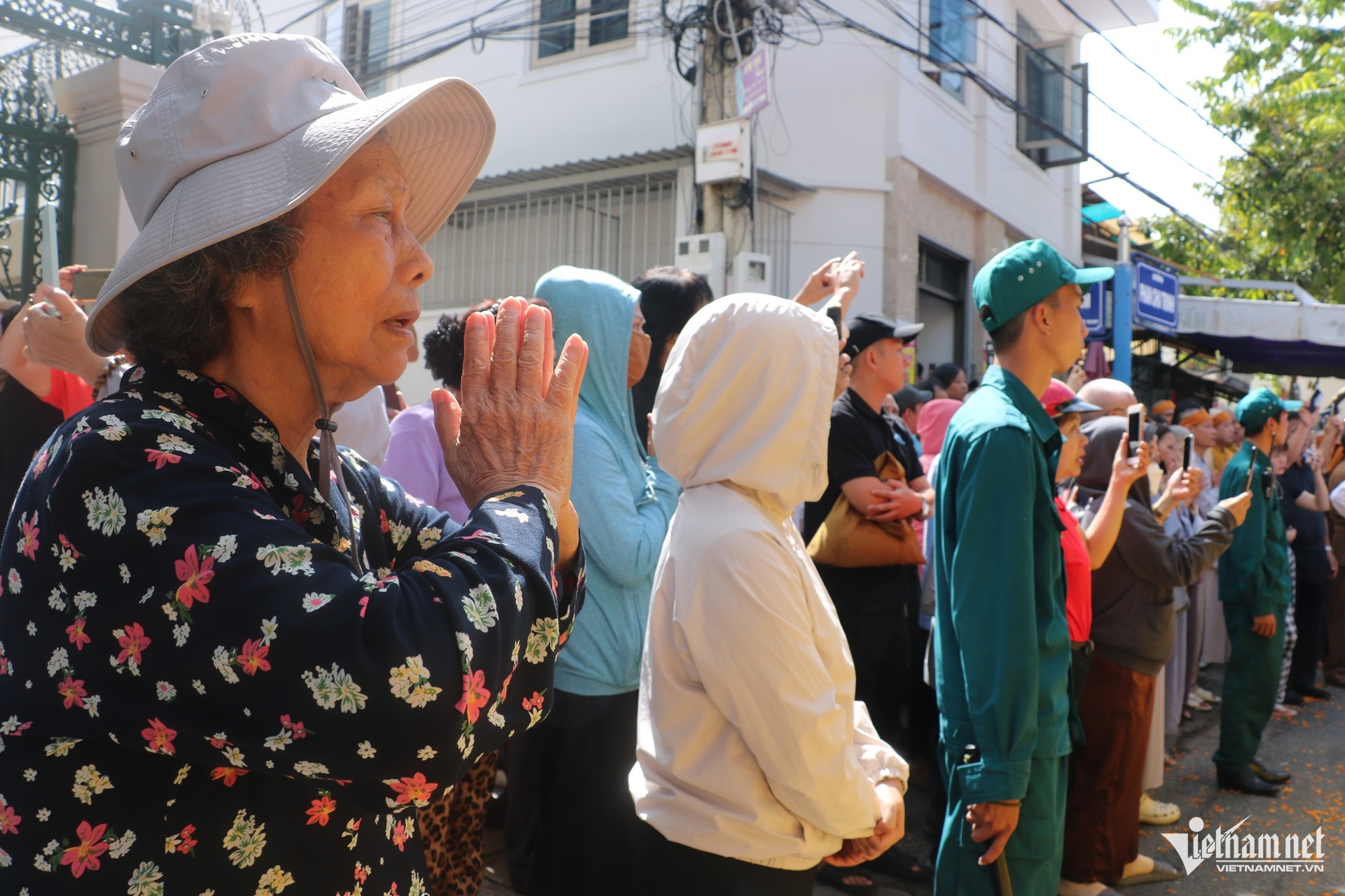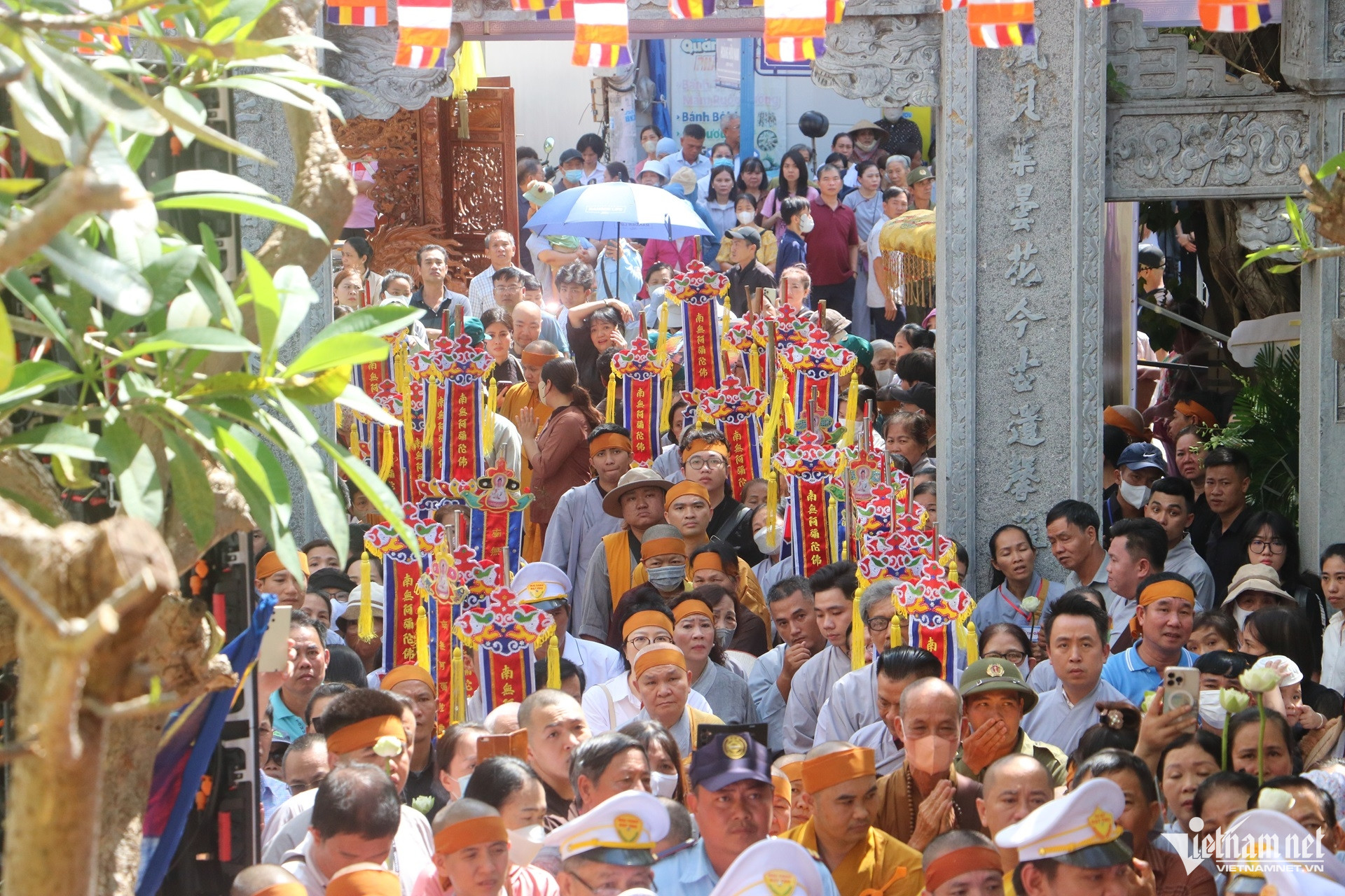 Hàng dài phật tử, người dân lần lượt xếp hàng, kính cẩn cúi đầu viếng, niệm Phật, bày tỏ lòng tôn kính trước khi kim quan được cung thỉnh vào nhập bảo tháp theo nghi thức Phật giáo.