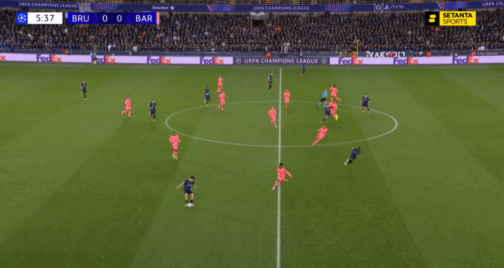 Ba bàn thua của Barcelona trước Club Brugge đều có dấu hiệu bị khai thác triệt để khoảng trống phía sau hàng thủ. Cầu thủ đối phương, Carlos Forbs, hai lần thoát xuống dễ dàng sau những pha chuyển trạng thái nhanh, để lại hàng thủ Barça lúng túng và chậm chạp. Các bàn thua tương tự đã xuất hiện trong trận thua Sevilla và trận hòa Elche, nơi tiền đạo đối phương dễ dàng bứt tốc từ giữa sân để đối mặt với thủ môn.