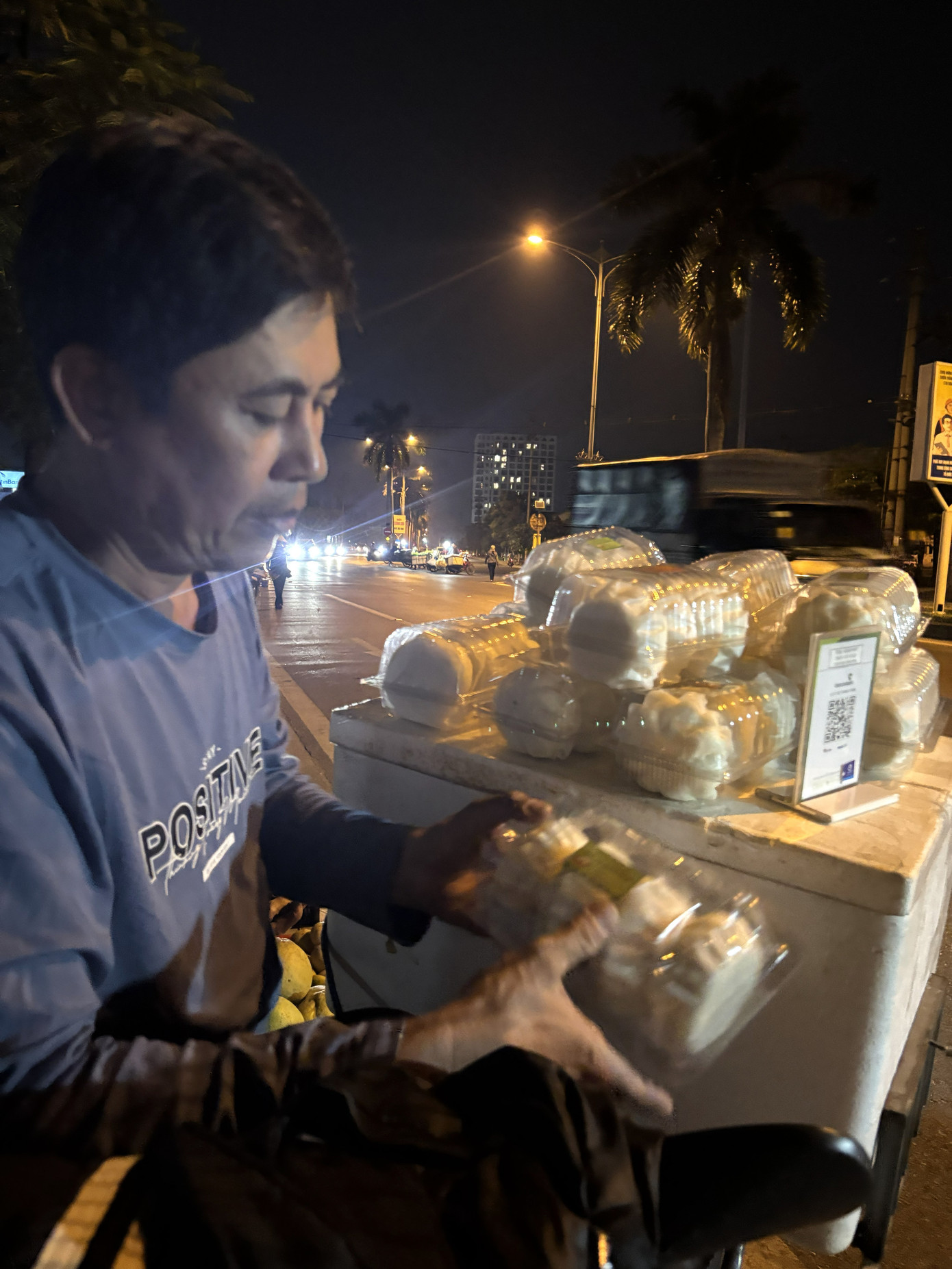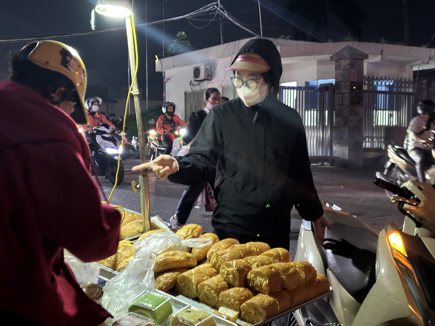Trước cổng khu công nghiệp, không khó bắt gặp những khay bánh mì, bánh bao không rõ nguồn gốc, không bao gói, không hạn sử dụng được bày bán công khai.