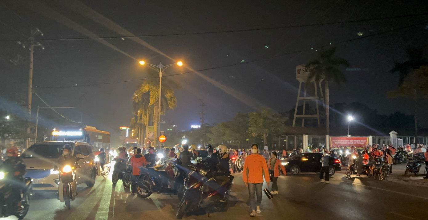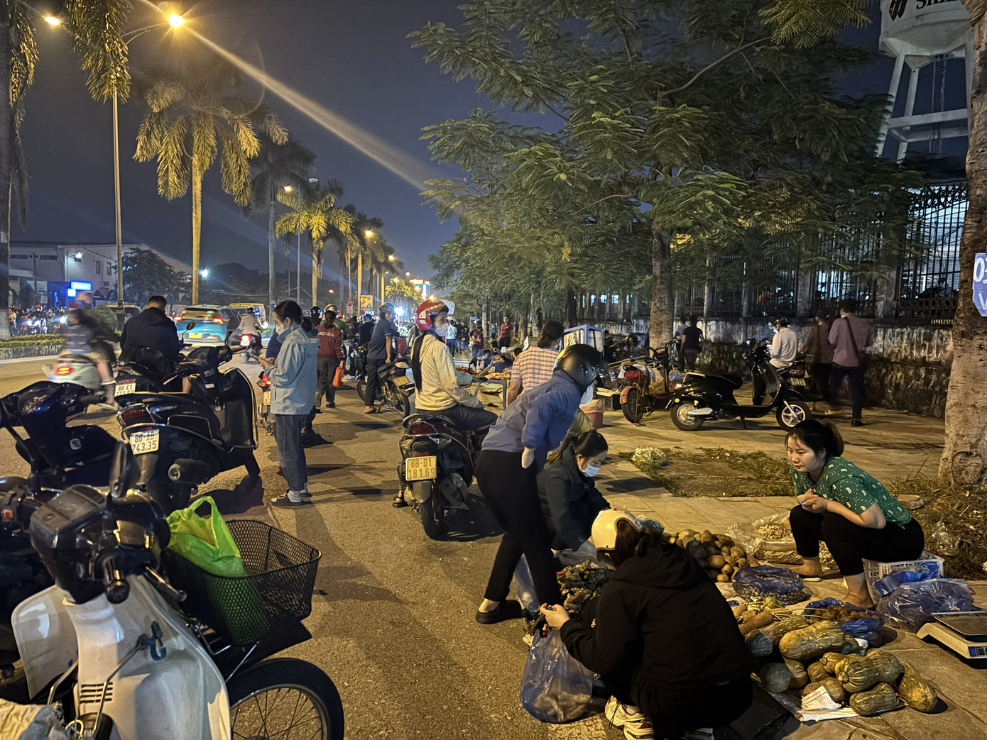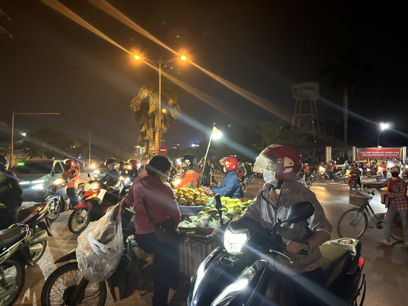 Giờ tan ca, từ 17h30 đến 19h mỗi ngày, khu vực cổng khu công nghiệp Khai Quang, phường Vĩnh Phúc, tỉnh Phú Thọ lại đông nghẹt người. Nơi đây hóa thành thành “chợ tạm” sôi động, bày bán từ đồ ăn, nước giải khát đến quần áo, giày dép...