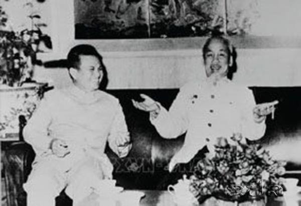 Chủ tịch Hồ Chí Minh và Hoàng thân Souphanouvong tại chiến khu Việt Bắc năm 1951.