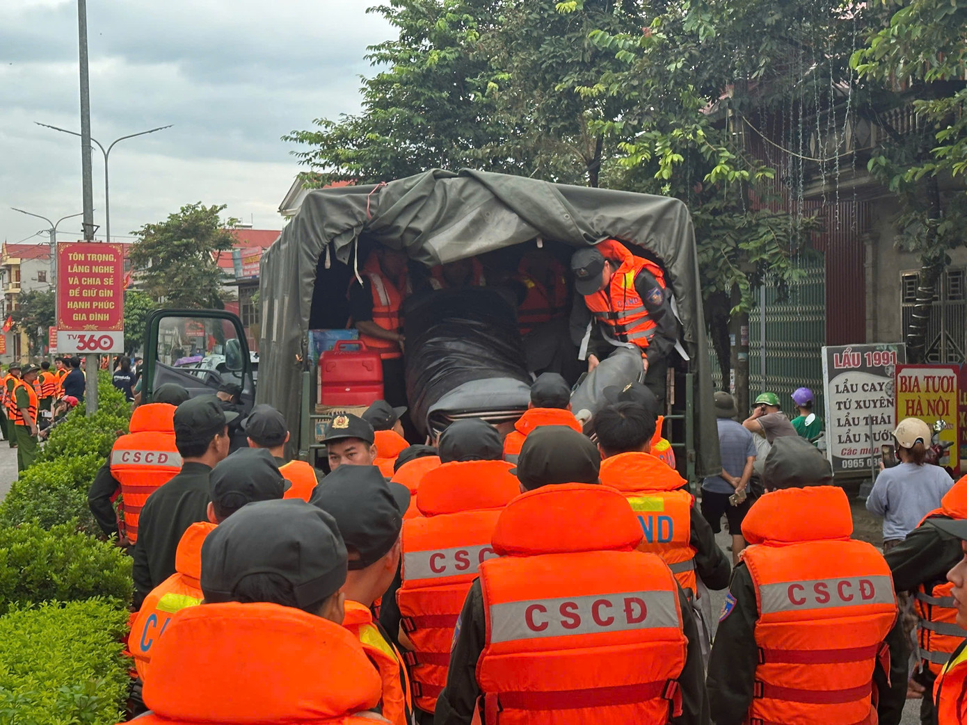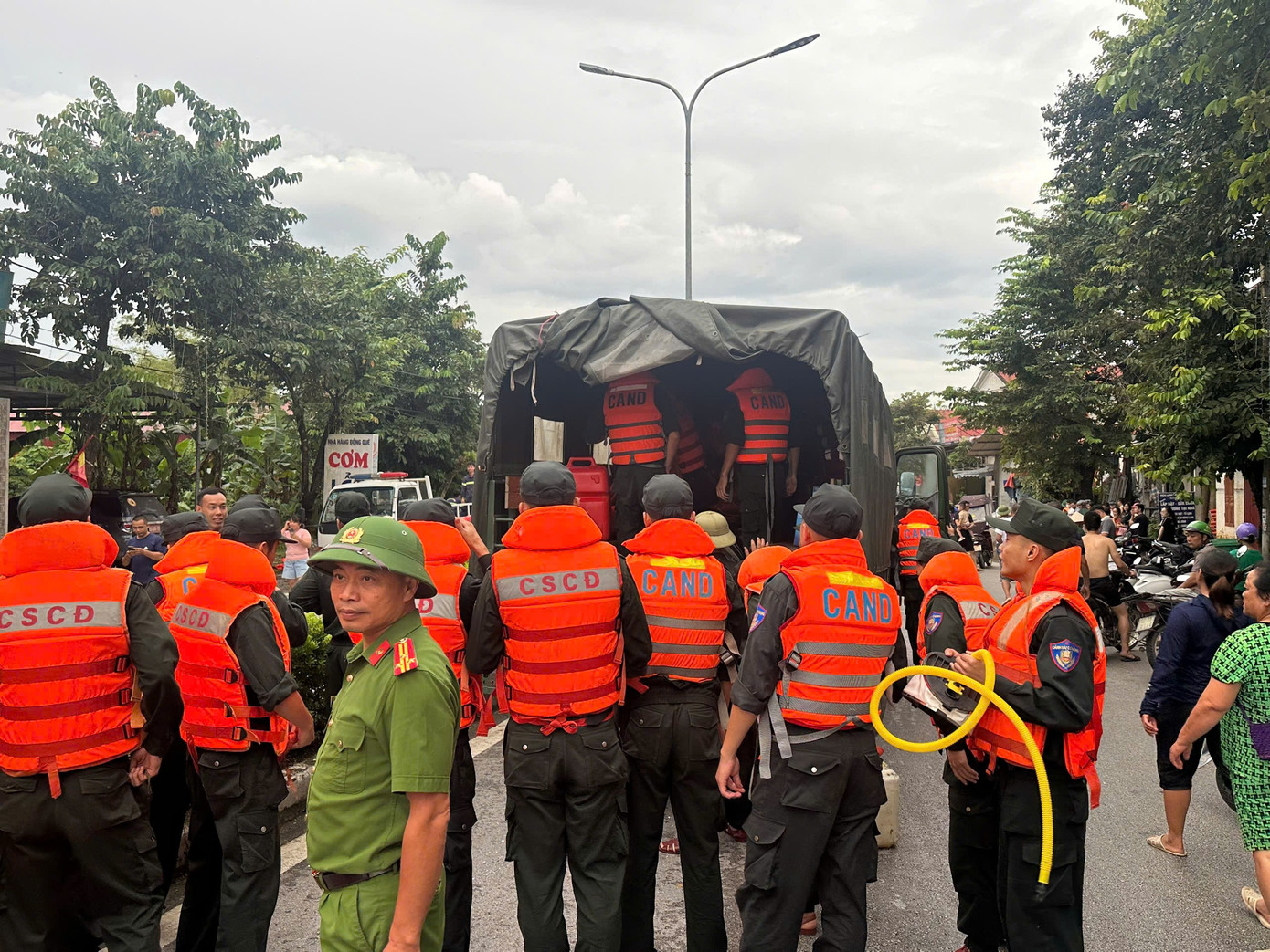 Phương tiện cứu hộ cứu nạn cùng cán bộ, chiến sĩ Công an Lạng Sơn sẵn sàng trợ giúp, cứu dân