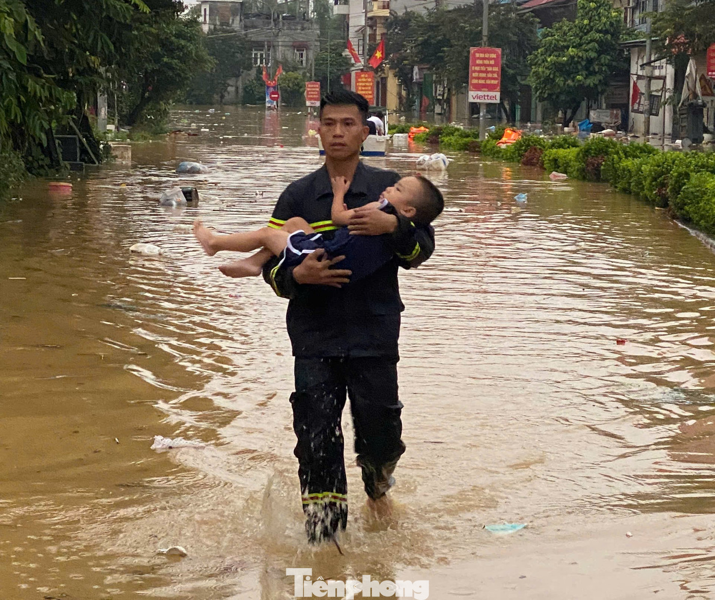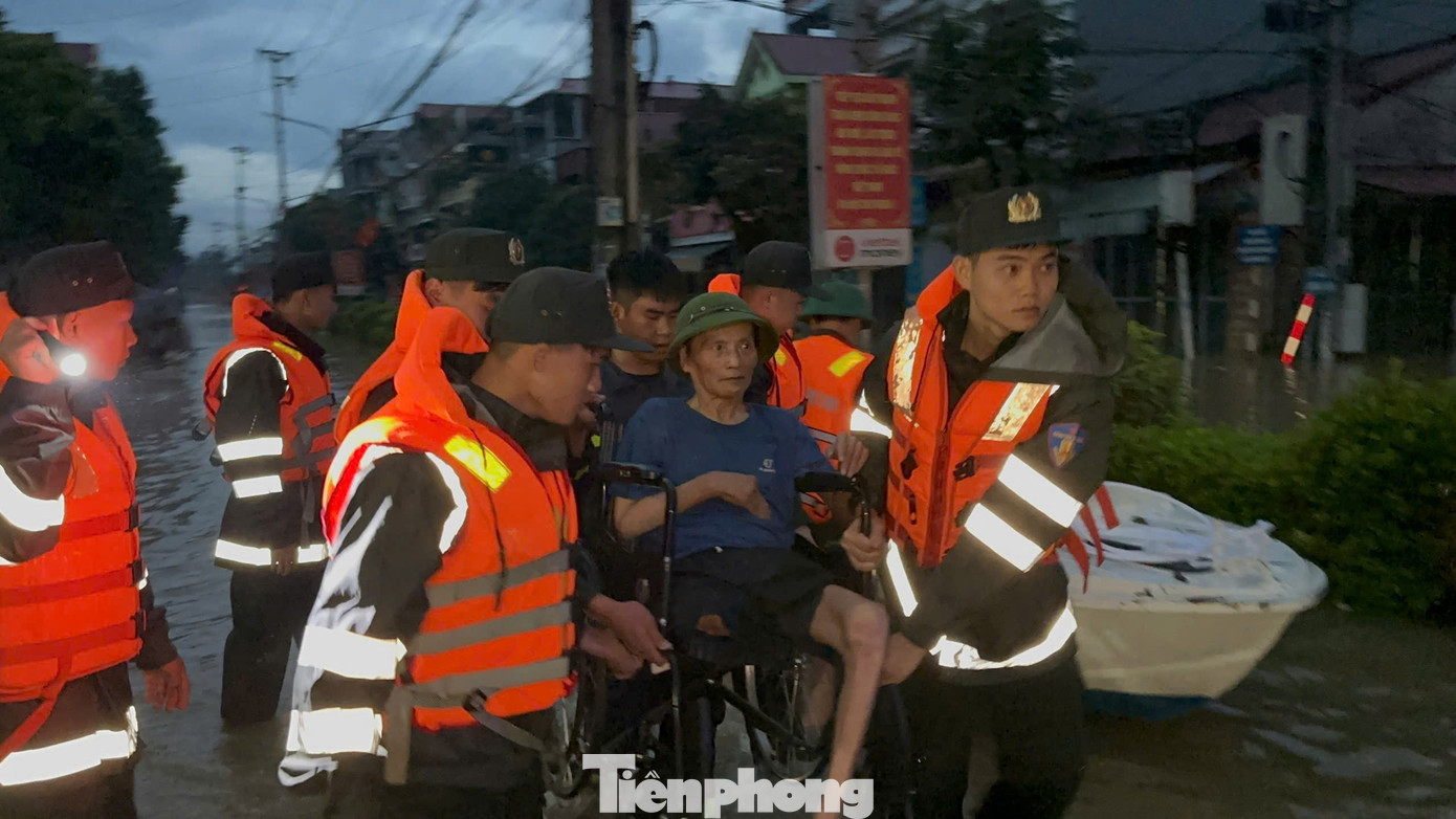 Chập tối 7/10, nhiều người dân được các chiến sỹ Công an cứu ra khỏi nơi nguy hiểm.