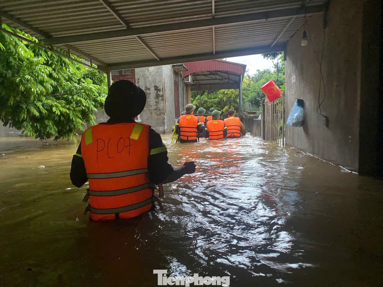Hình ảnh các chiến sỹ Công an Lạng Sơn đi từng gia đình ngập lụt cứu dân (video ghi vào chiều 7/10/2025).