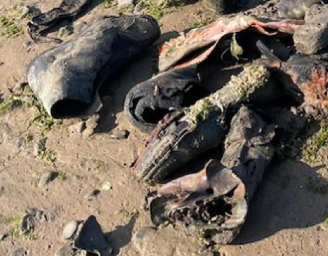 Trong khi thực hiện dự án phục hồi các vũng đá ven biển tại Ogmore-By-Sea thuộc thung lũng Glamorgan (Nam Xứ Wales), các thành viên thuộc nhóm phi lợi nhuận Beach Academy bất ngờ tìm thấy hàng loạt vật thể lạ. Ảnh: @Beach Academy.