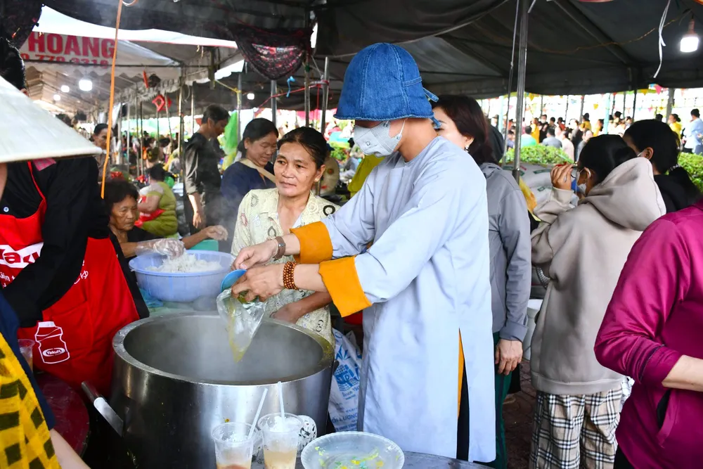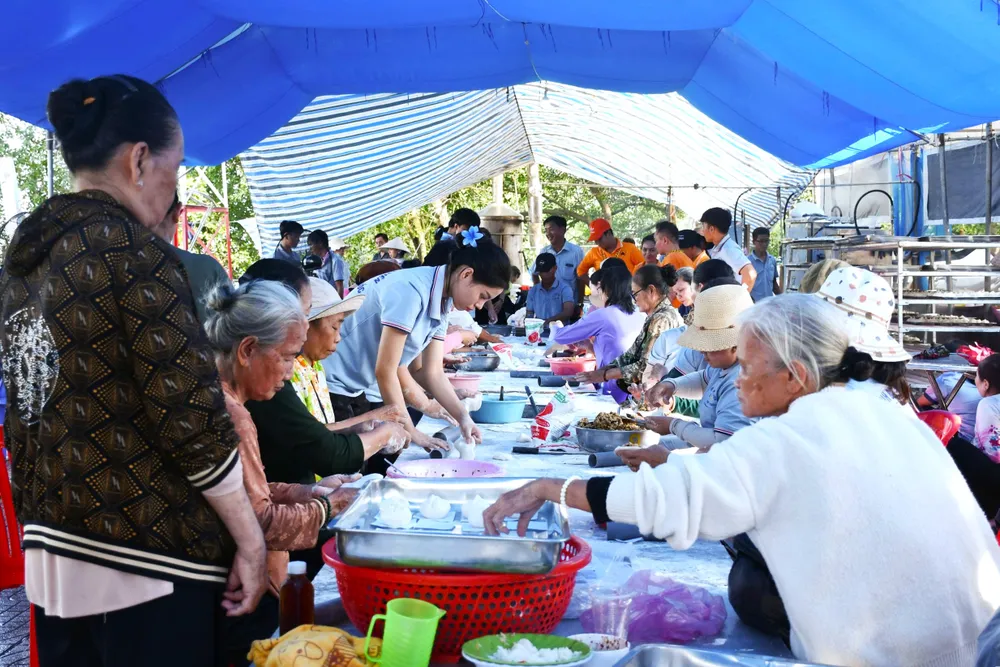Không chỉ đông đảo khách hành hương, nhiều người dân còn tình nguyện góp sức phục vụ lễ giỗ. Từ sáng sớm, họ cùng nhau chuẩn bị những món ăn, nước uống miễn phí để phục vụ khách. Hình ảnh ấy không chỉ là nét đẹp văn hóa mà còn là biểu tượng của tinh thần đoàn kết, nghĩa tình miền Nam.