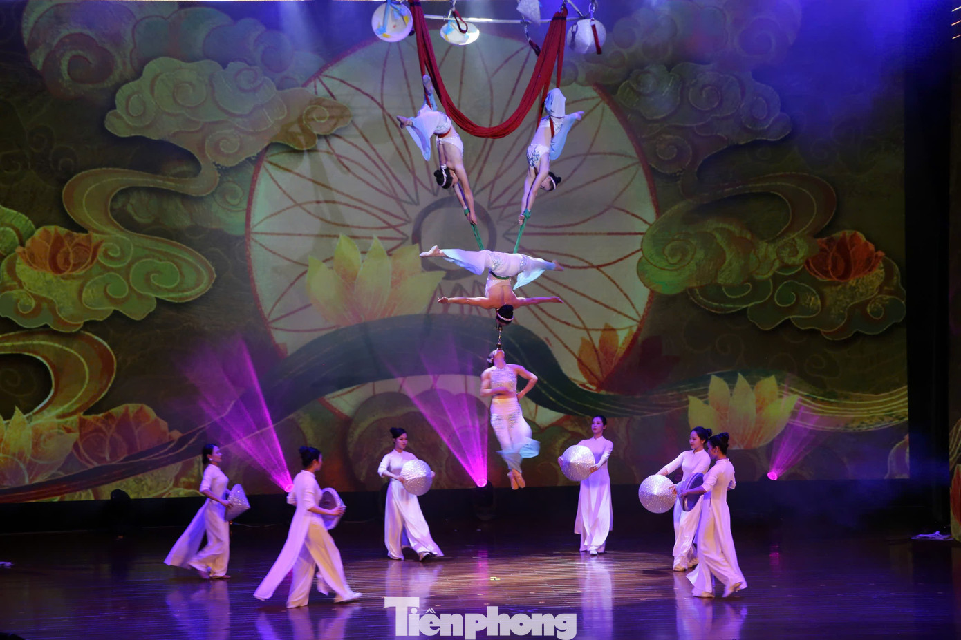 Tiết mục xiếc Đu nón trên nền nhạc Hello Việt Nam khiến khán giả thích thú.