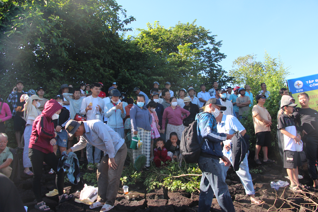 Ngay từ sáng sớm, trước thời điểm đóng cửa đập tràn, hàng trăm người dân đã tập trung về vùng chân đập nhà máy để chờ bắt cá, xem bắt cá.