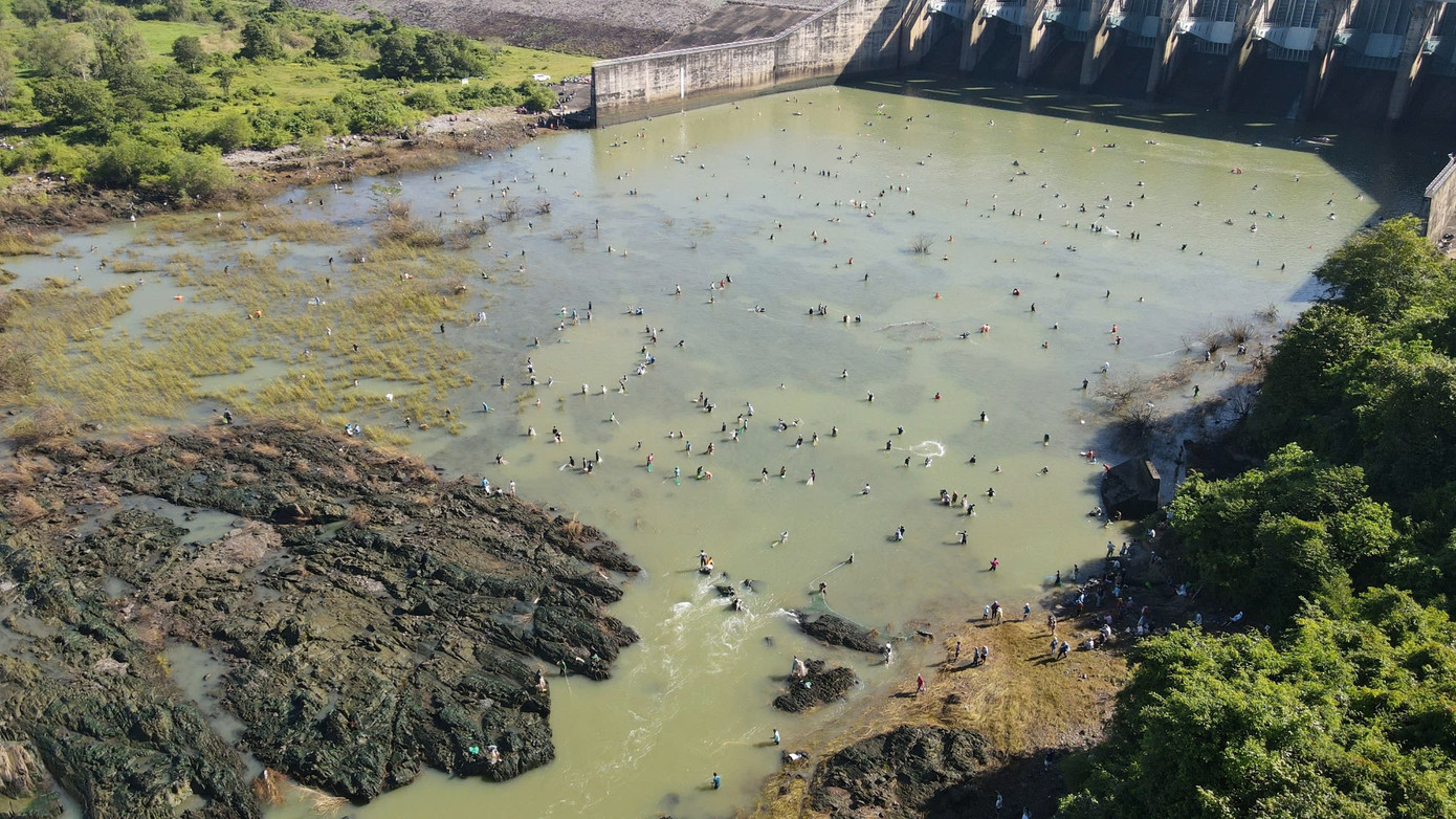 Hàng trăm người ào xuống chân đập thủy điện đánh bắt cá ngay khi nhà máy ngưng xả tràn