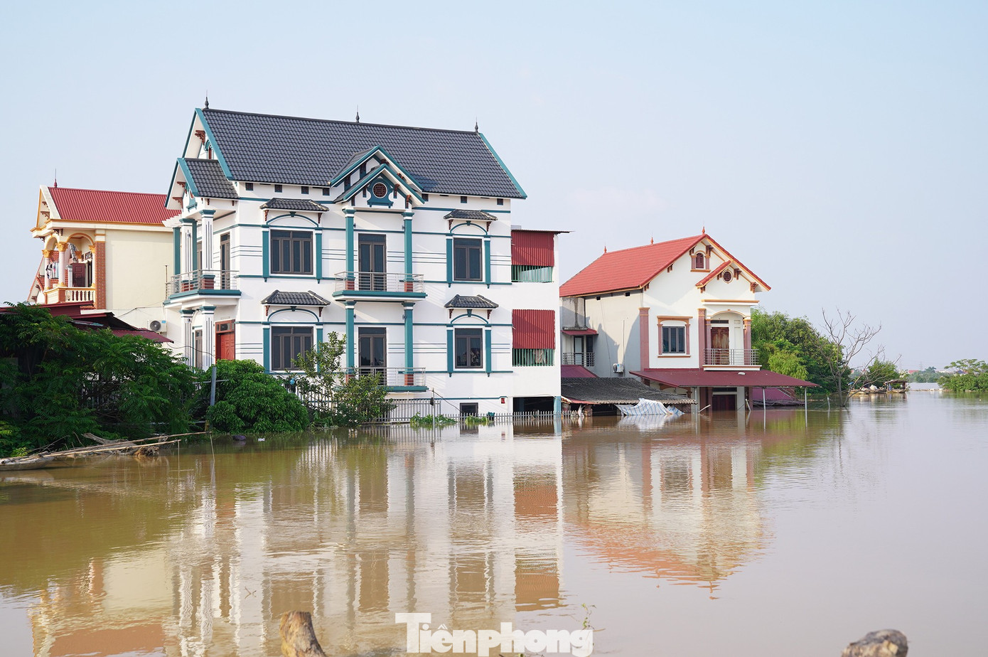 Nhà cửa bên ngoài đê đã bị ngập sâu.