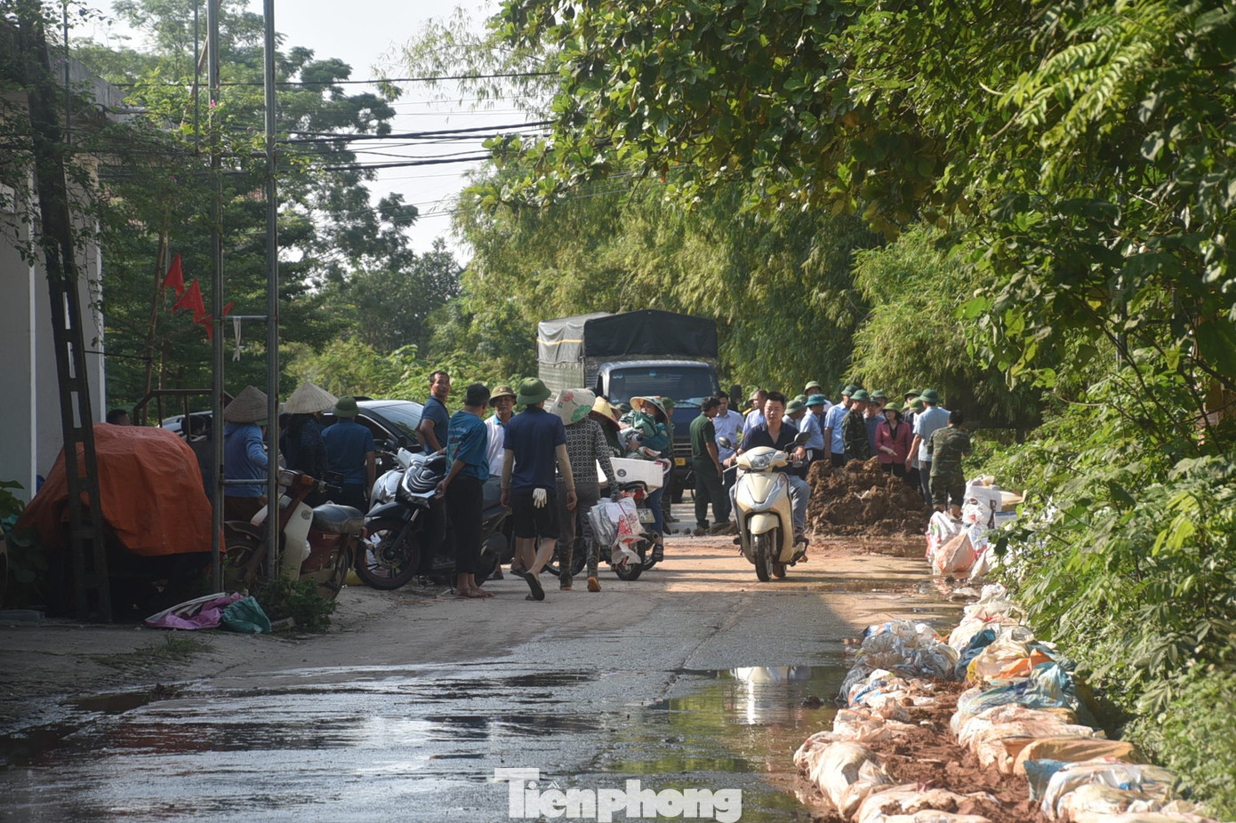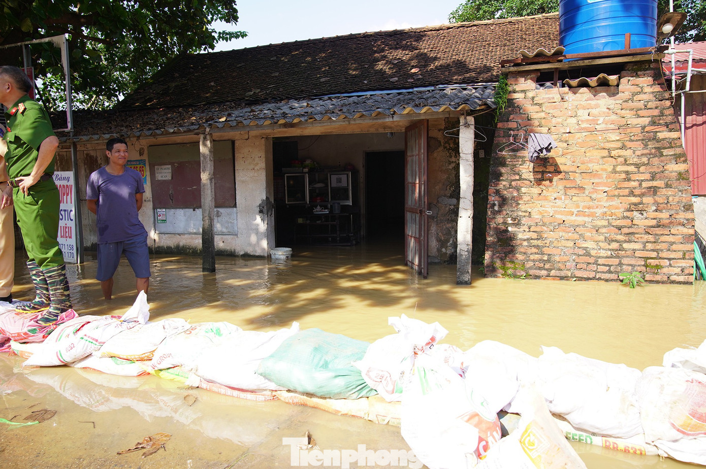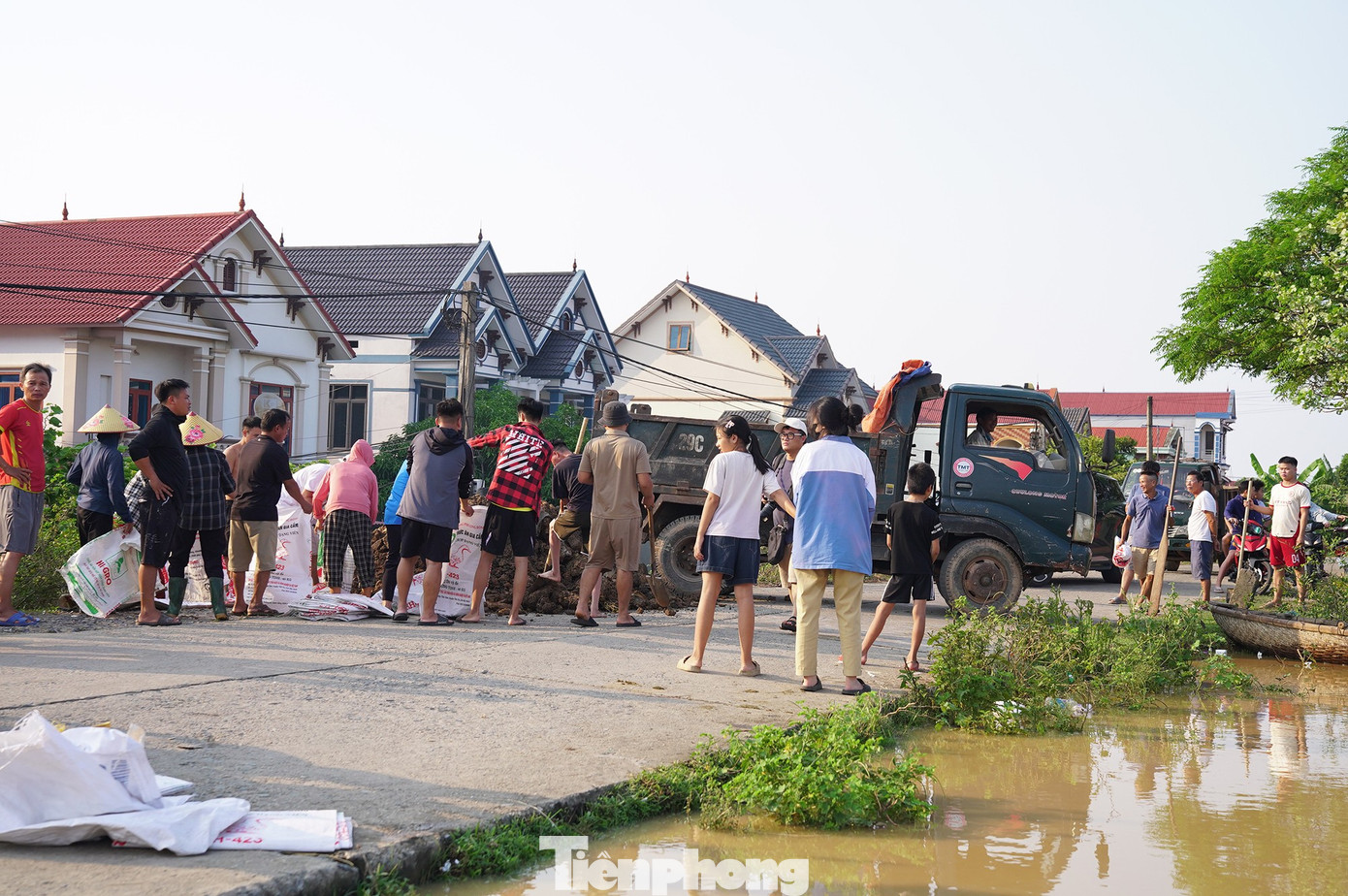 Loa phát thanh của xã đã phát thông báo từ sớm, kêu gọi người dân, thanh niên các thôn hỗ trợ lực lượng chức năng xúc đất, đổ vào bao tải để be bờ, đắp đập phòng trường hợp nước tràn qua đê.