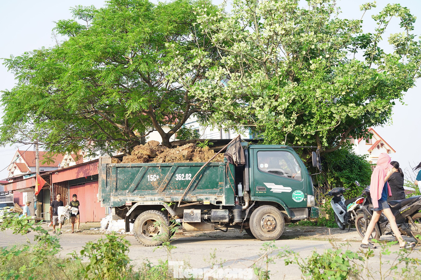 Chiều 9/10, từng đoàn xe tải chở đất được huy động đến đê Lương Phúc (khu vực gần cầu Xuân Cẩm, xã Đa Phúc, Hà Nội).