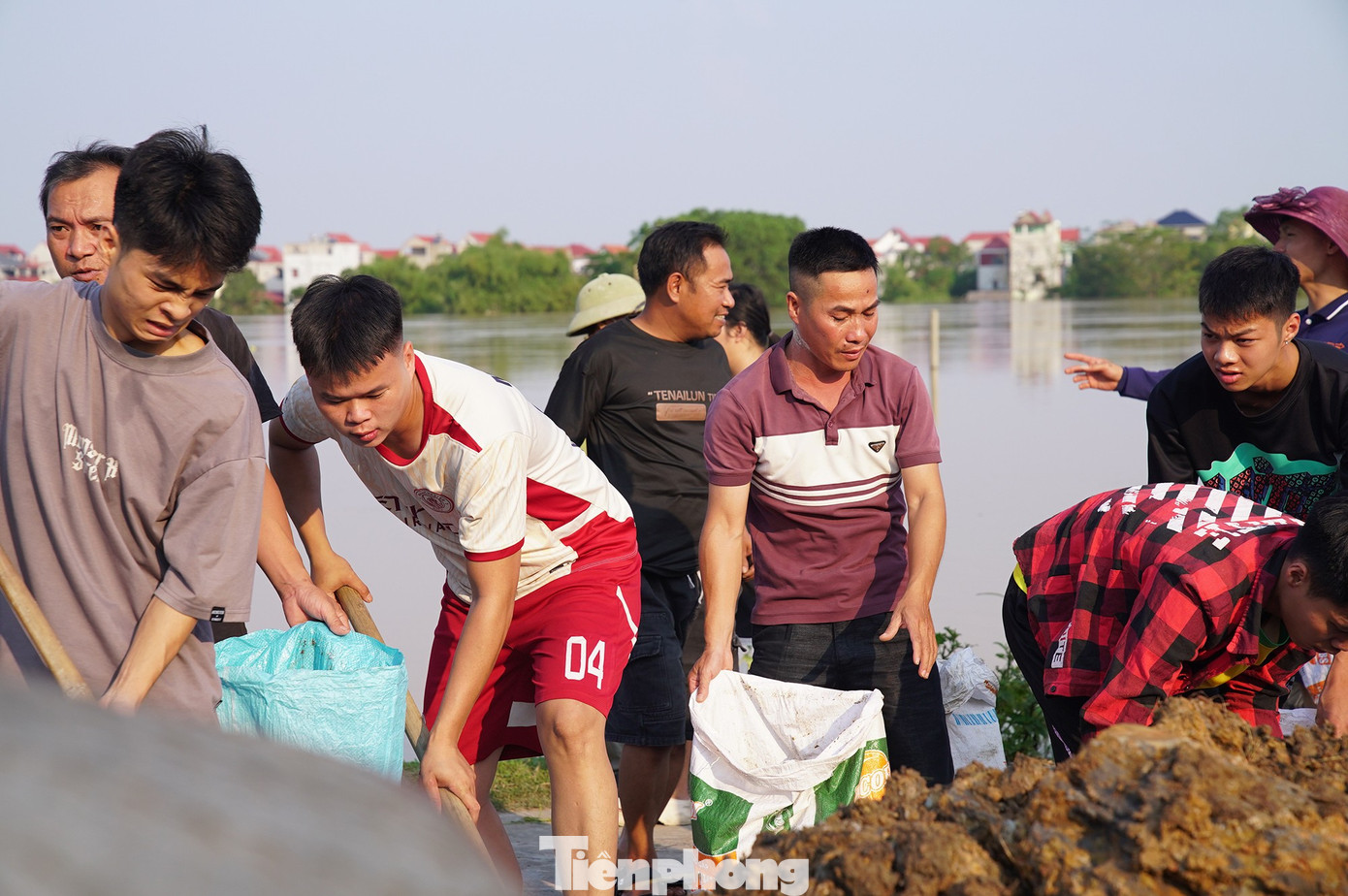 Các lực lượng đã đắp đất chống lũ tràn nhiều vị trí đê thấp với tổng chiều dài hơn 5km.