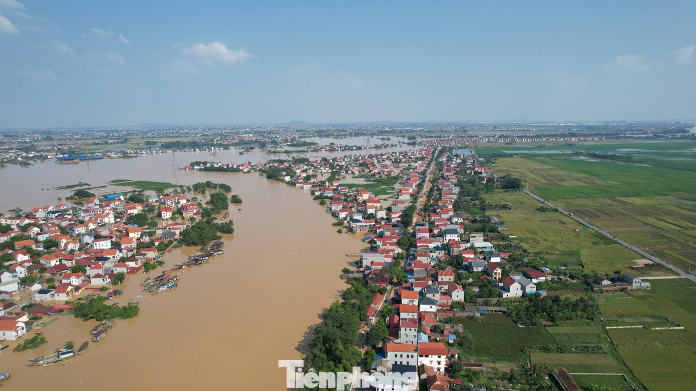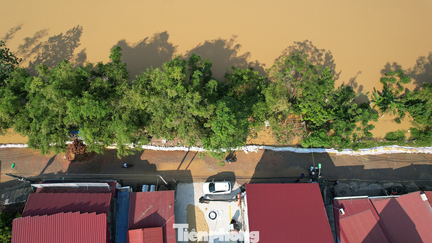 Đây là đoạn đê có mực nước sông Cà Lồ dâng rất cao, gần sát mép.