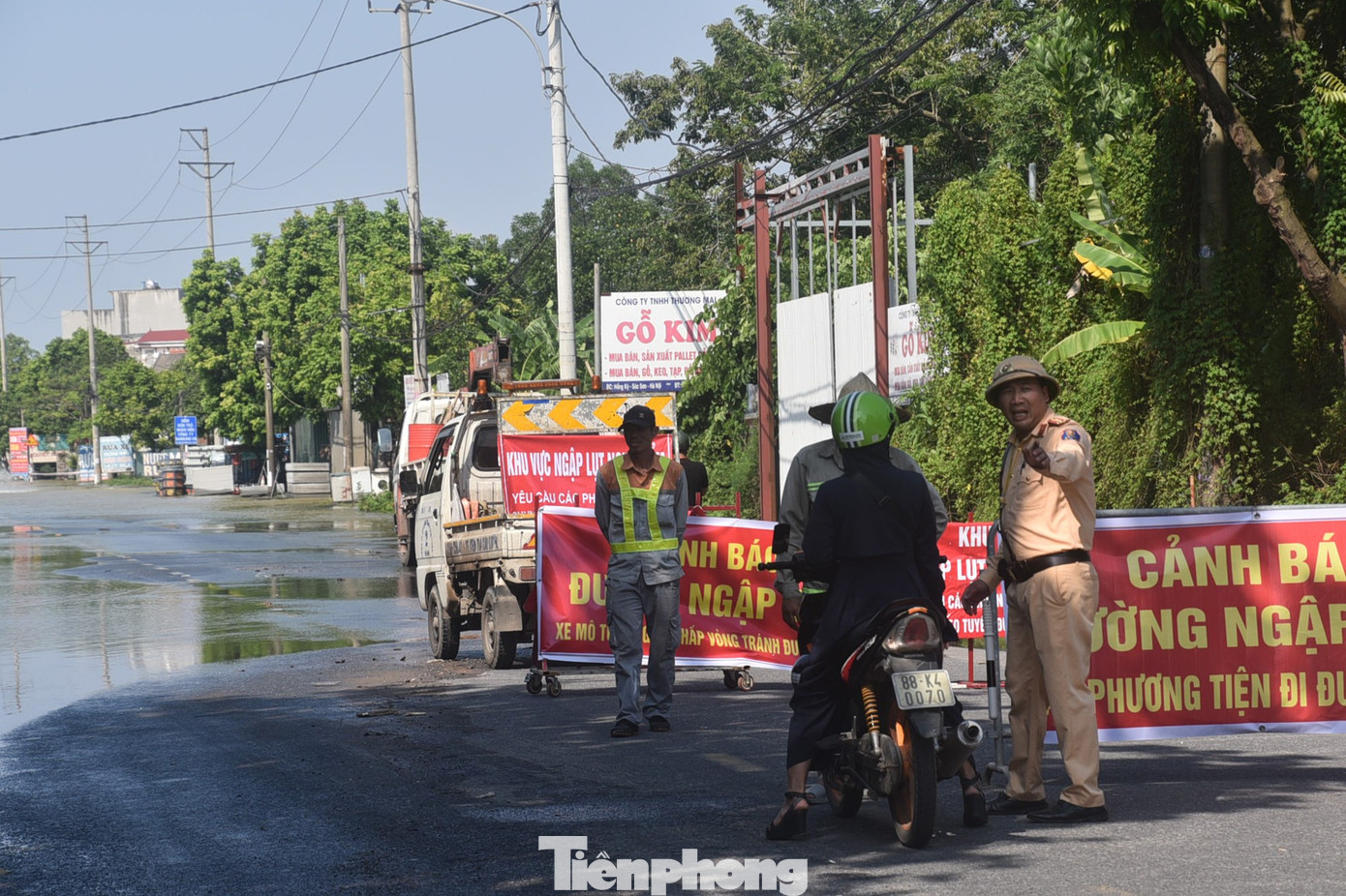 Lực lượng CSGT đã có mặt ở đây từ sớm để đặt biển cảnh báo, phân luồng giao thông.