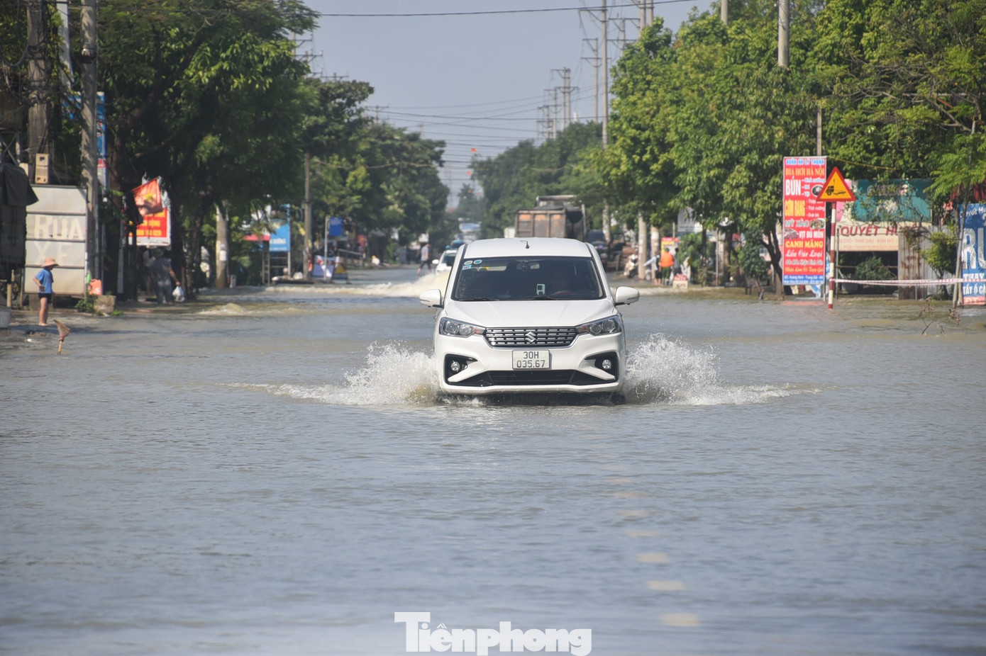 Quốc lộ 3 đoạn qua địa bàn xã Sóc Sơn cũng bị ngập sâu khiến giao thông bị chia cắt.