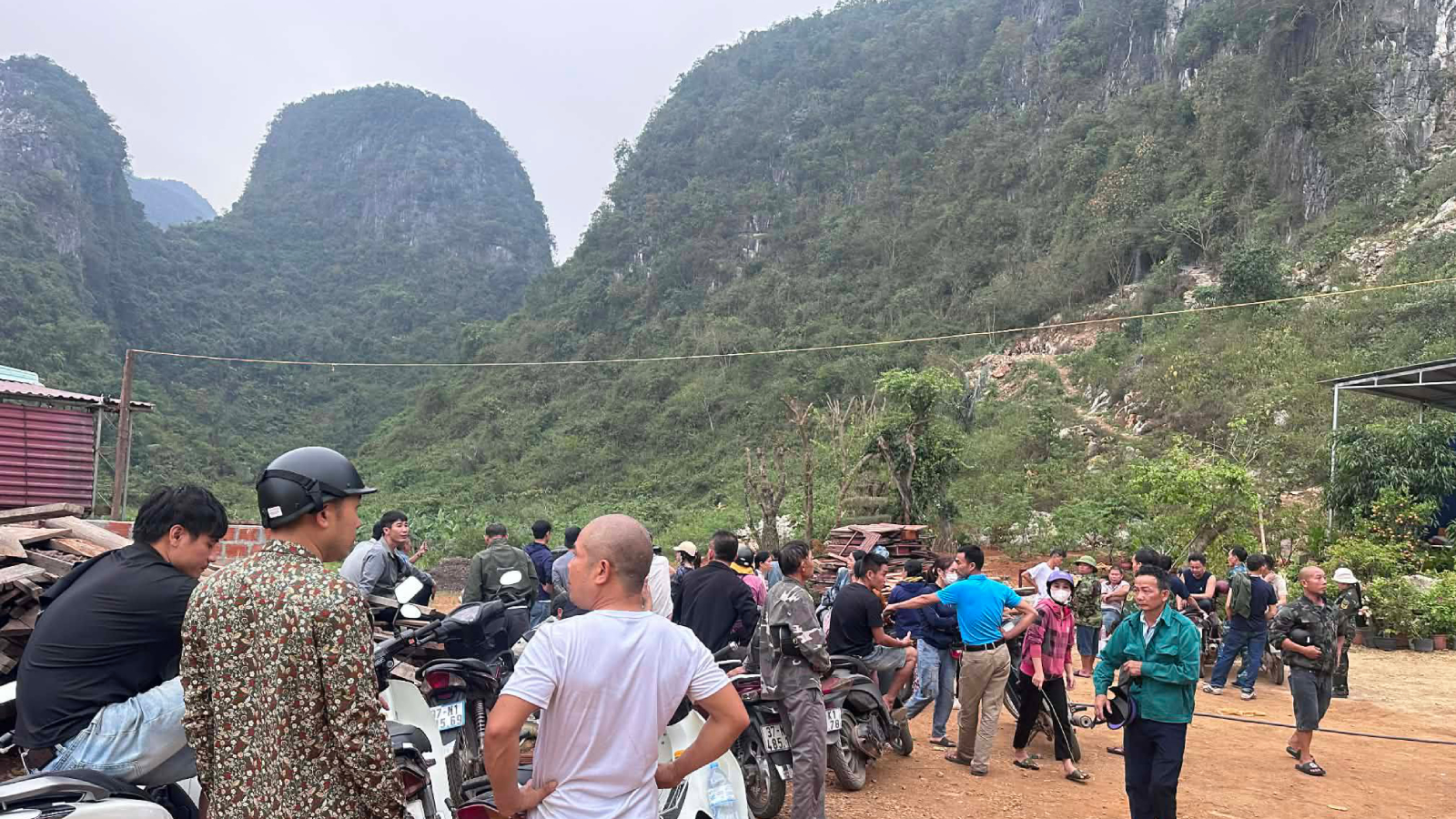 Người dân, người thân, công an mang theo cả flycam vào khu vực đồi núi gần của Tân Kỳ tìm ông Dương.
