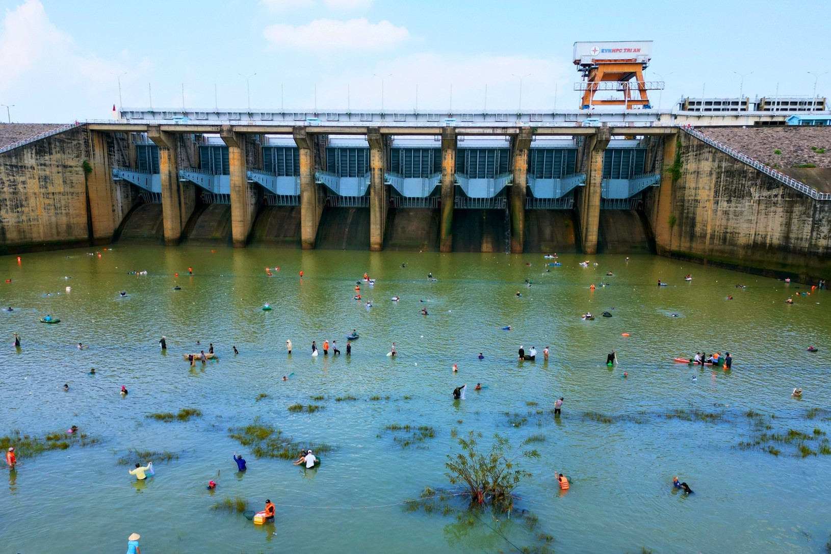Đúng 8h, khi các cửa xả tràn của thủy điện Trị An chính thức đóng lại, tiếng reo hò vang dậy khắp nơi. Sau khoảng 10 phút, từng nhóm người với phao hơi, xuồng nhỏ chèo ra giữa chân đập để bắt cá, tạo nên khung cảnh náo nhiệt như một ngày hội.