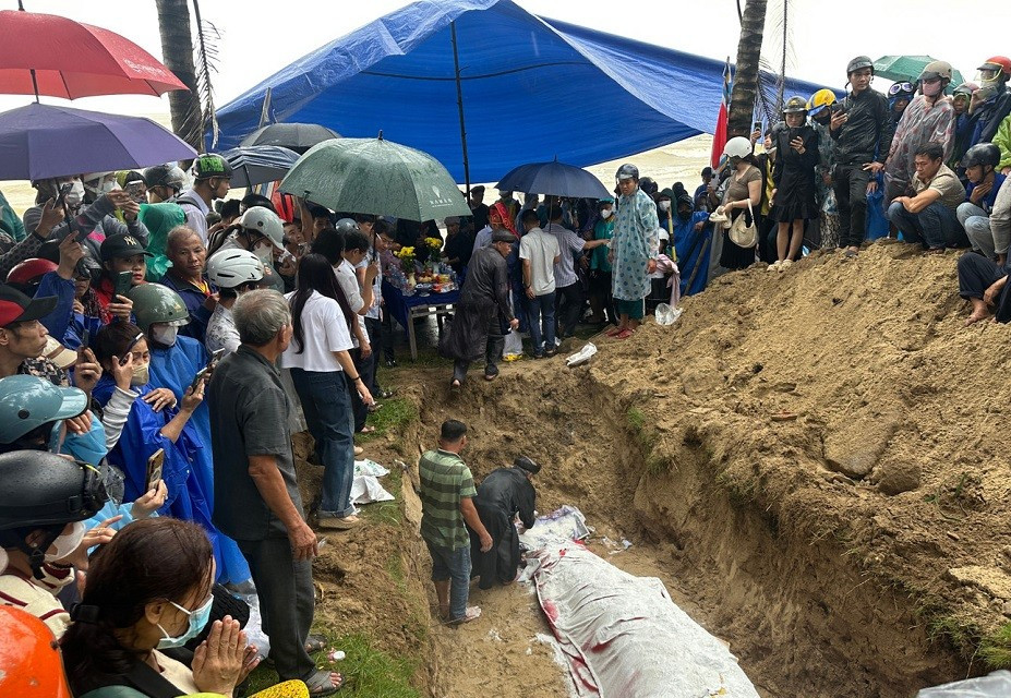 Ngày 30/10, hàng trăm người dân đội mưa tụ tập tại khu vực biển Nguyễn Tất Thành (phường Liên Chiểu) để xem nghi thức an táng cá Ông, loài cá được ngư dân ven biển tôn kính như vị thần hộ mệnh giữa trùng khơi.
