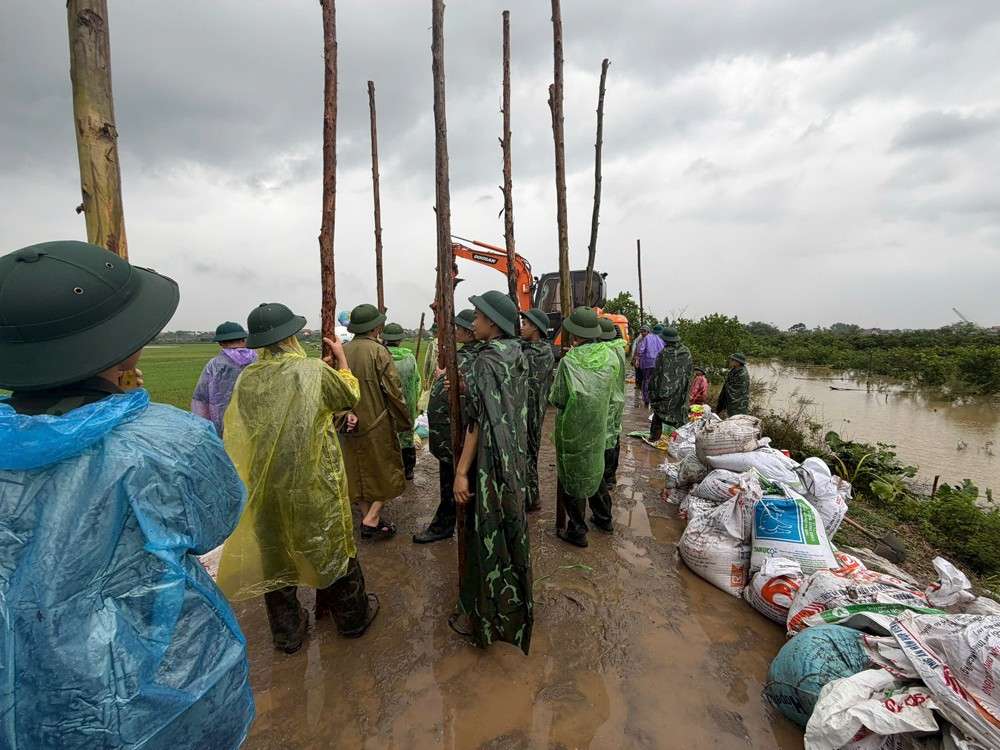 Hàng trăm bao tải đất, cát, cùng cây gỗ, cọc tre được vận chuyển đến hiện trường để gia cố tạm thời, chống sạt lở lan rộng. Đến chiều cùng ngày, đoạn đê bị sạt trượt cơ bản đã được khắc phục, bảo đảm an toàn bước đầu.