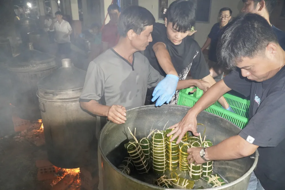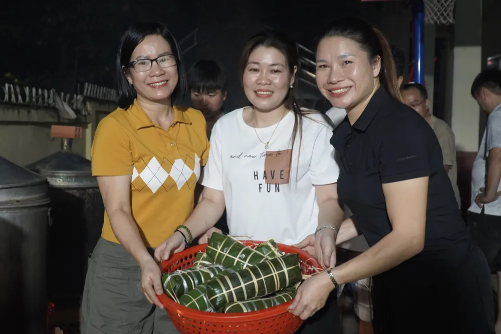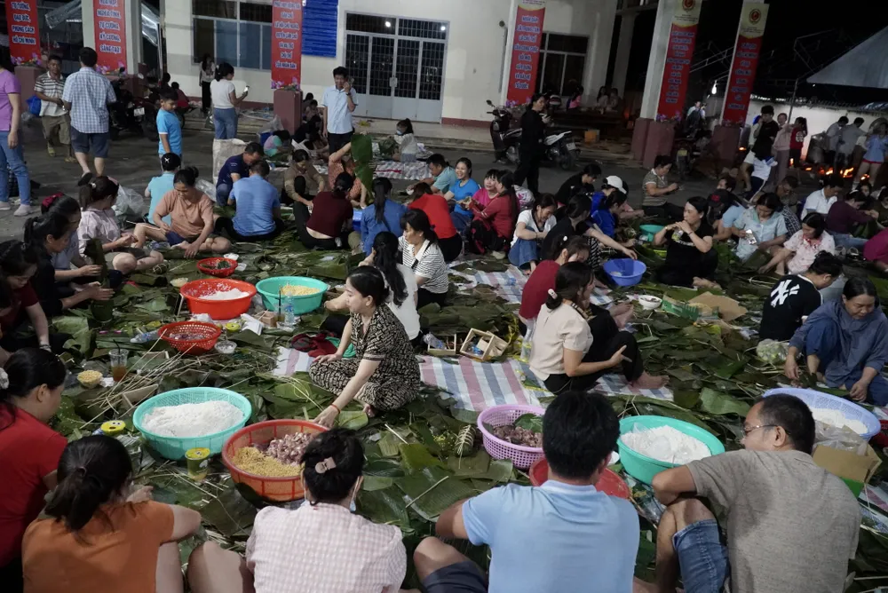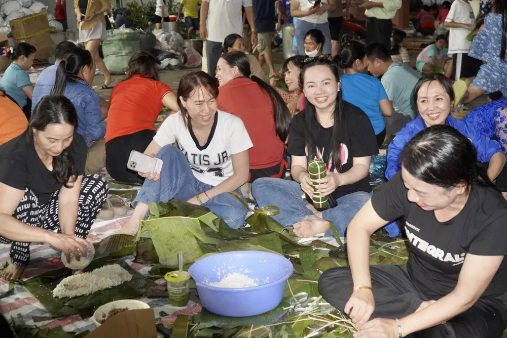 Nhiều người cùng nhau gói bánh gửi đồng bào với tinh thần “lá lành đùm lá rách”.
