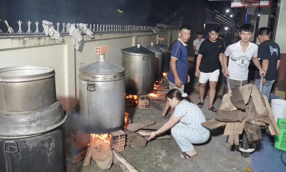 Hàng trăm người dân gói bánh thâu đêm để gửi người dân vùng lũ.