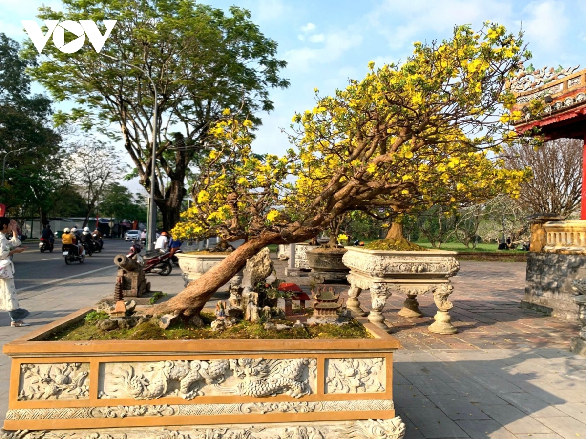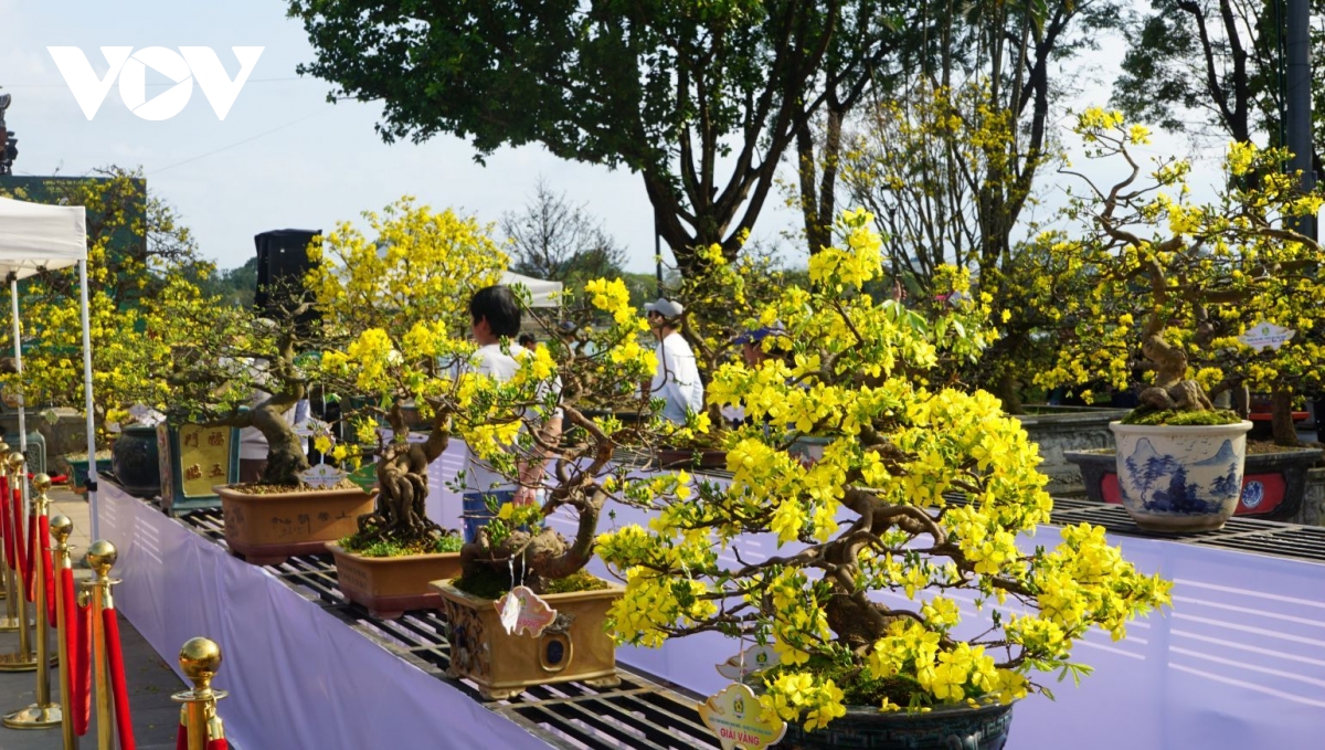 Những cây mai cảnh thế độc lạ đã hội tụ về công viên Nghênh Lương Đình, quận Phú Xuân, thành phố Huế.