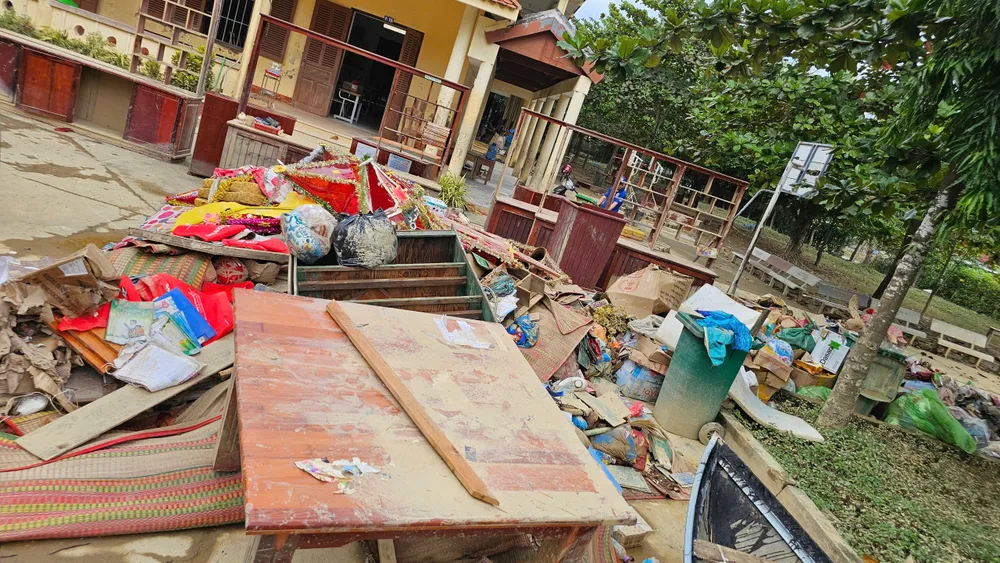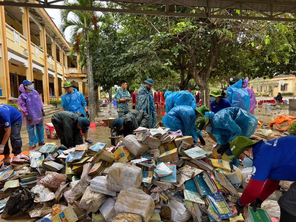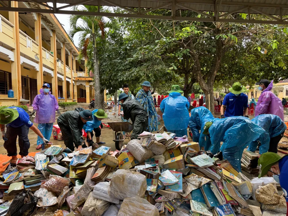 Trường có 1.023 học sinh. Hiện đã thống kê được khoảng 580-600 học sinh bị hư hỏng hoàn toàn sách vở, dự kiến con số còn tăng do một số phụ huynh chưa kịp phản hồi thông tin từ Zalo trường.