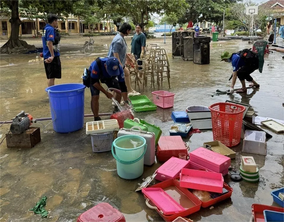 Ngoài ra, các nhóm thanh niên hỗ trợ dọn dẹp vệ sinh tại các trường tiểu học theo điều động của Tỉnh đoàn Khánh Hòa, phối hợp lực lượng tại chỗ khắc phục hậu quả sau bão lũ.