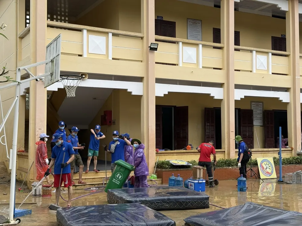 Tình nguyện viên nhanh chóng triển khai công tác dọn dẹp vệ sinh, cải tạo môi trường và sửa chữa cơ sở vật chất tại các trường: Tiểu học Diên Sơn, THCS Trần Nhân Tông...