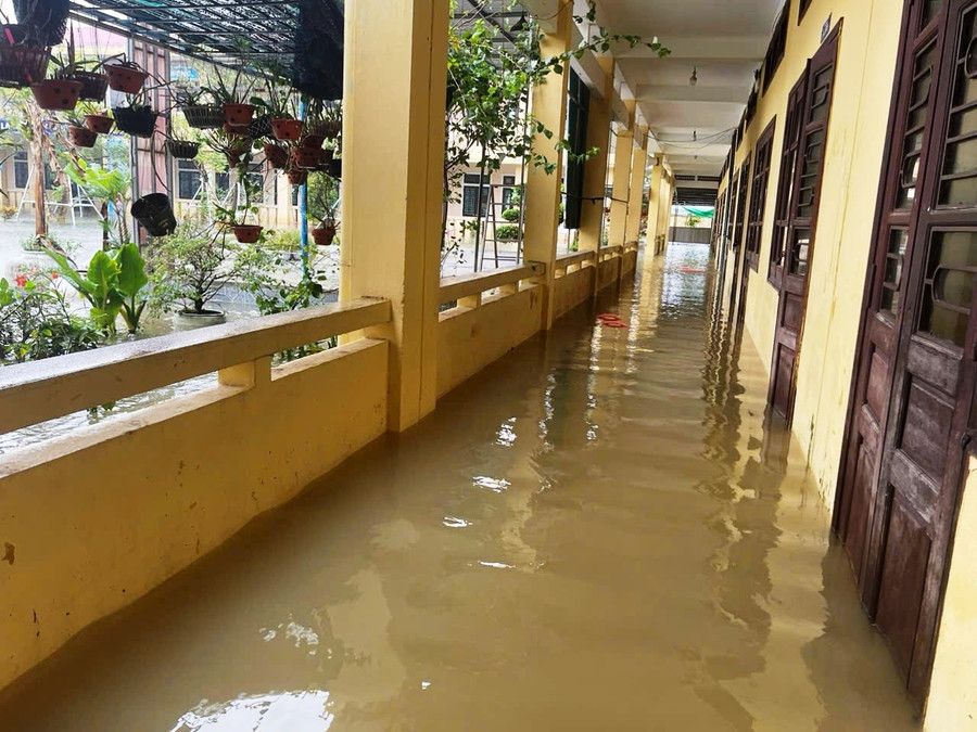 Một số trường vùng thấp trũng ở phường Hóa Châu, Đan Điền bị ngập sâu, học sinh vẫn chưa thể đến trường.