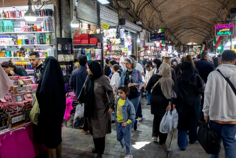 Người dân xem hàng tại khu chợ Grand Bazaar ở Tehran ngày 16/4. Giá cả đã tăng khi xung đột với Mỹ gây lạm phát. Ảnh: Getty Images