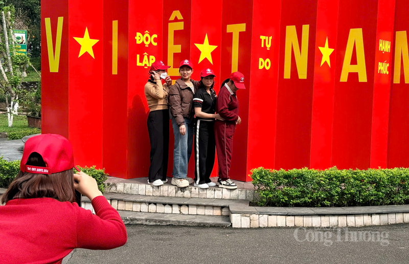 Du khách thích thú check-in bên các tiểu cảnh và nghe những câu chuyện về anh hùng liệt sĩ hy sinh tại nơi đây.
