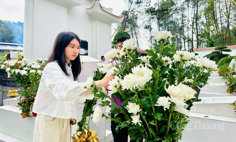 Du khách kính cẩn dâng hương tại khu mộ của 10 cô gái thanh niên xung phong.