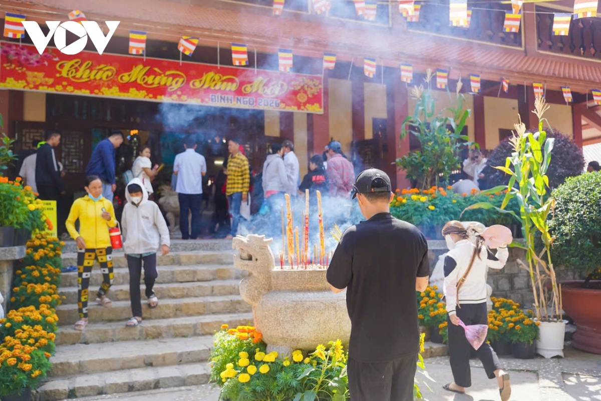 Trong làn khói hương nghi ngút, từng nén nhang được thắp lên mang theo những lời nguyện ước đầu năm. Không gian linh thiêng khiến lòng người trở nên nhẹ nhàng, thanh thản.