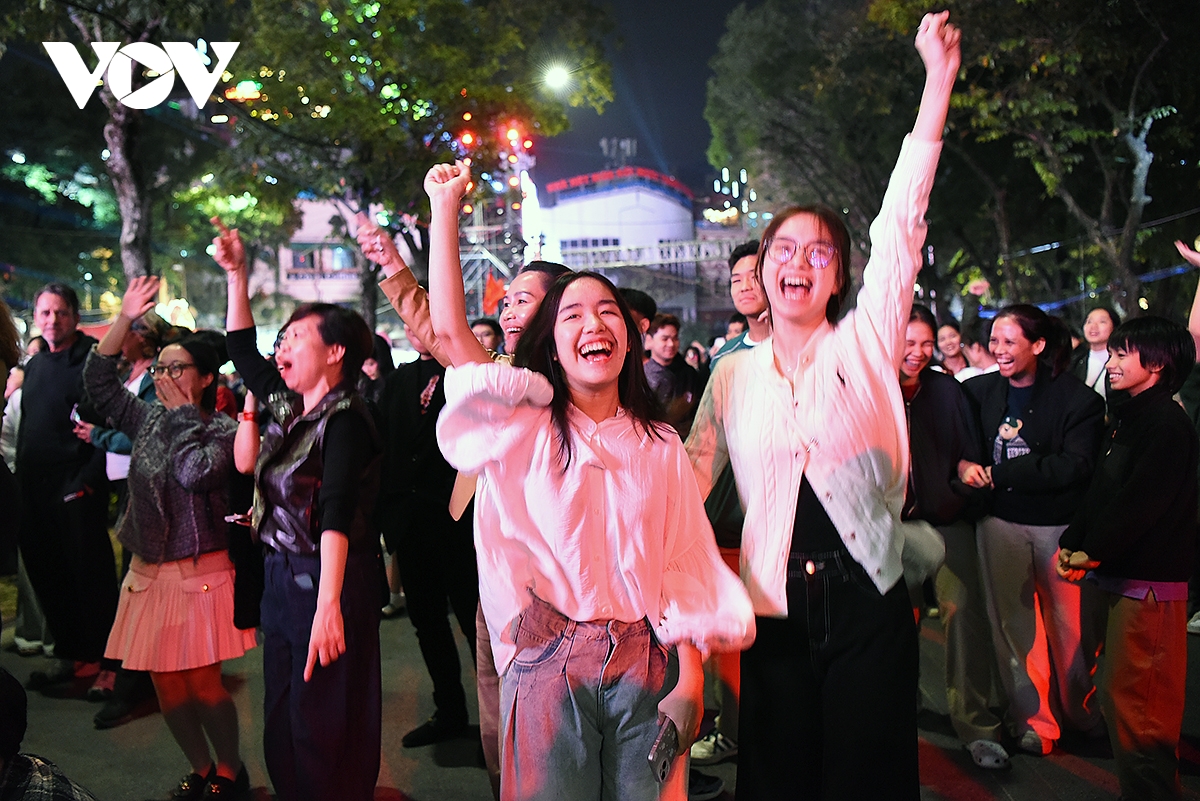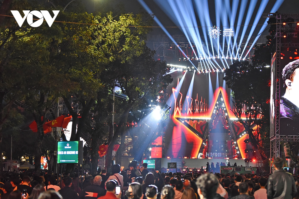 Đêm giao thừa 2026 tại quảng trường Đông Kinh Nghĩa Thục (Hà Nội), 4 giờ trước thời khắc đếm ngược, chương trình ánh sáng và nghệ thuật “Countdown 2026 - Opening Real Connection 2” bắt đầu với những ca khúc khuấy động bầu không khí của ca sĩ Đông Hùng.