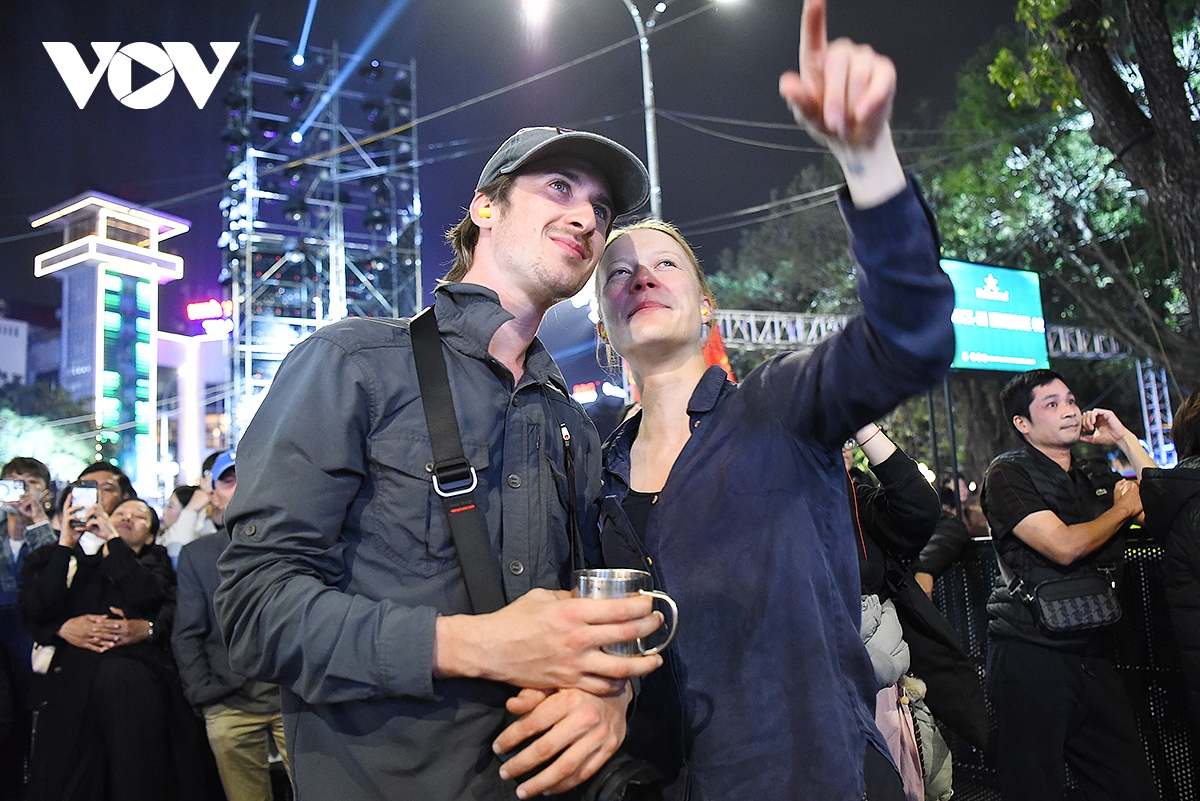 Cặp đôi du khách đến từ Đức ấn tượng với chương trình nghệ thuật và không khí hào hứng của người dân đón chào năm mới.