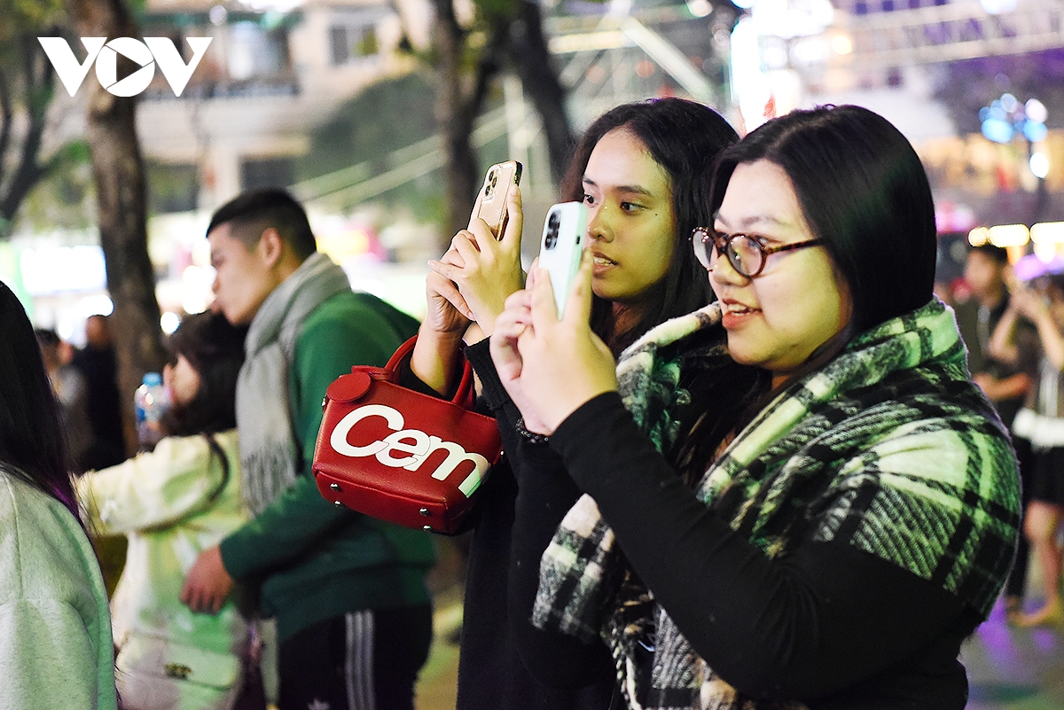 Các bạn trẻ chụp những tấm hình lưu niệm đẹp trong đêm giao thừa đón năm mới 2026.