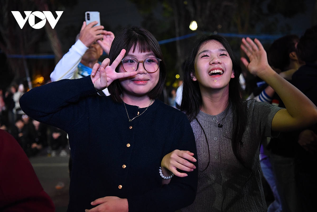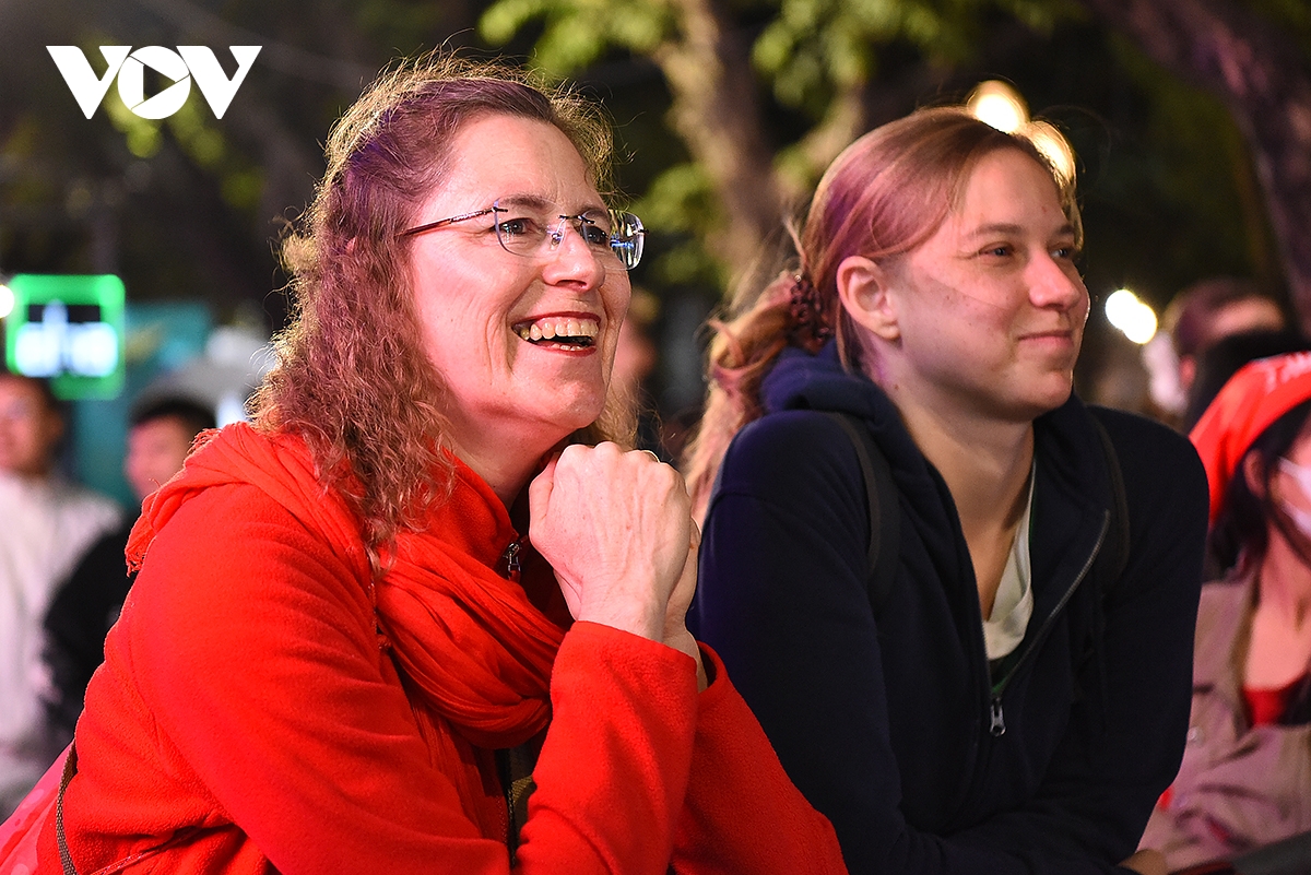 Ba nữ du khách đến từ Vương quốc Anh vui vẻ đón giao thừa trong bộ áo dài Việt Nam truyền thống. Một nữ du khách cho biết, "từ khi chưa đến Việt Nam chúng tôi đã biết đến áo dài, mua cho mình một chiếc áo dài và mặc đi dạo phố là một trong những việc đầu tiên chúng tôi làm khi đến Hà Nội. Được mặc áo dài đón năm mới tại Hà Nội thật tuyệt".