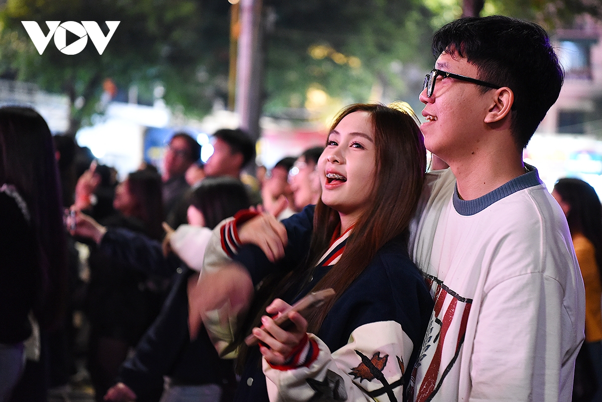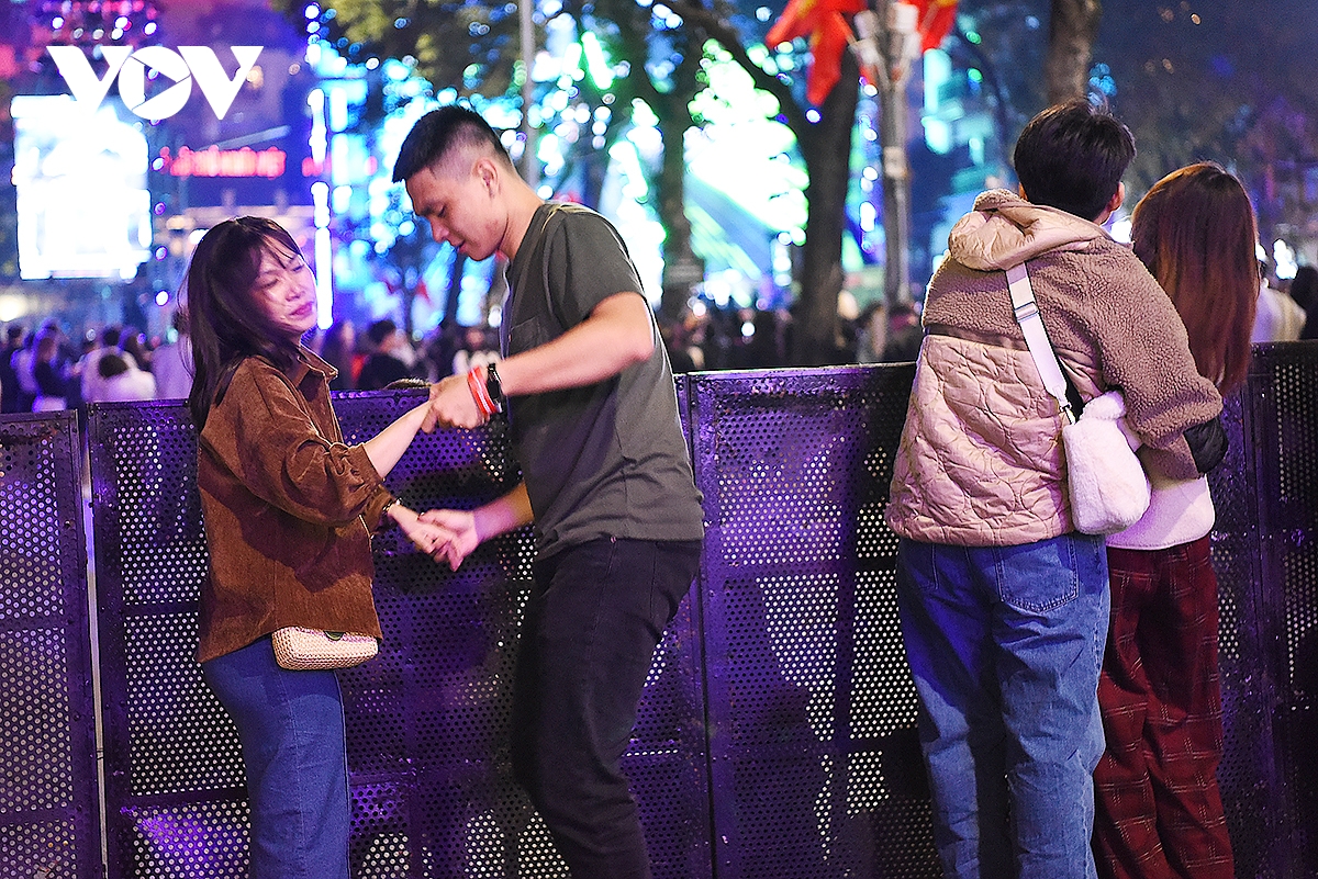 Những cặp đôi trẻ thể hiện niềm hạnh phúc theo những cách khác nhau trong đêm giao thừa.