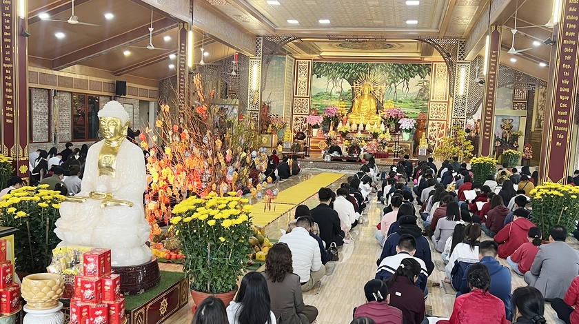 Rất đông các phật tử đến chùa cầu bình an cho năm mới. Ảnh: Quốc Huy