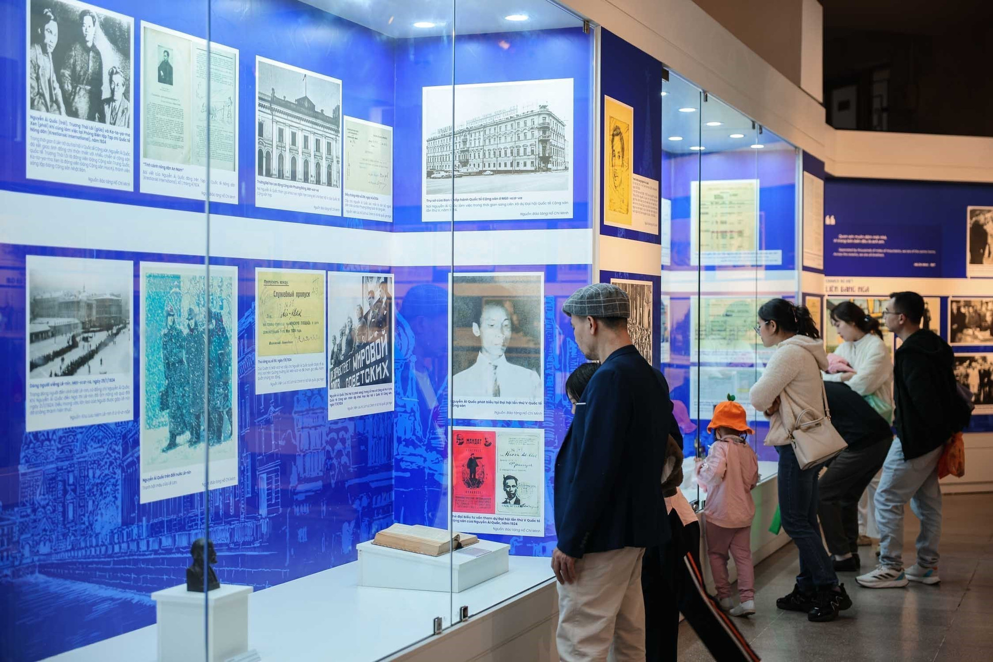 Người dân và du khách tham quan, tìm hiểu các hiện vật được trưng bày tại Bảo tàng Hồ Chí Minh. (Ảnh: HOÀNG HIẾU/TTXVN)