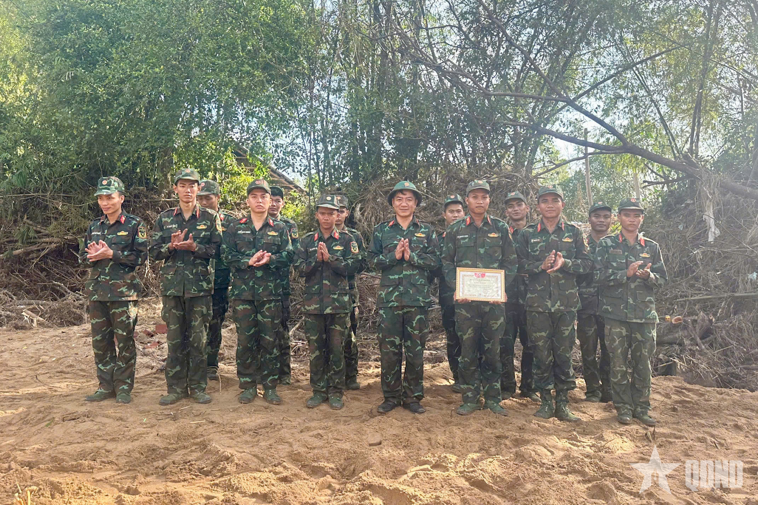 Đại diện Lữ đoàn 293 trao giấy khen tặng Hạ sĩ La Thanh Lượm.